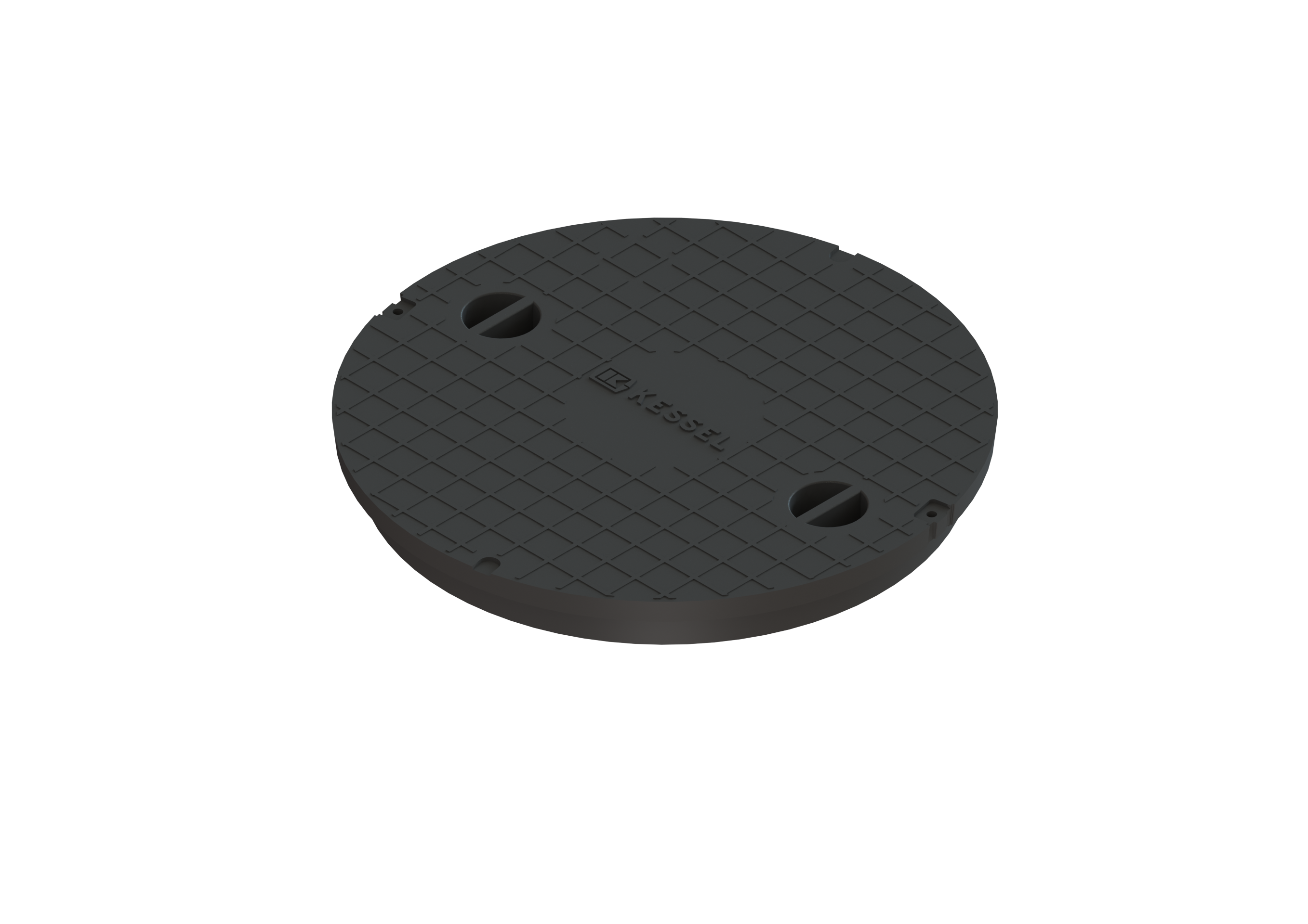 Abdeckplatte aus Kunststoff passend für KESSEL-Aufsatzstücke 860120 und 860121, belastbar bis max. 600 kg, unverriegelt einliegend, nicht tagwasserdicht.
