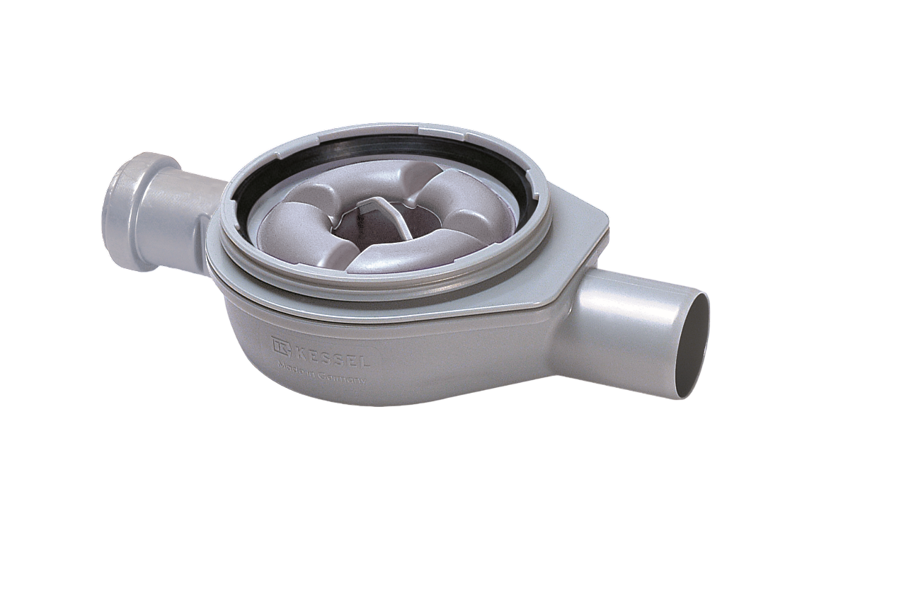 Der Grundkörper für Boden-/Badabläufe Der Ultraflache besteht aus Kunststoff und ist mit einem herausnehmbaren Geruchsverschluss und einer Lippendichtung ausgestattet.
