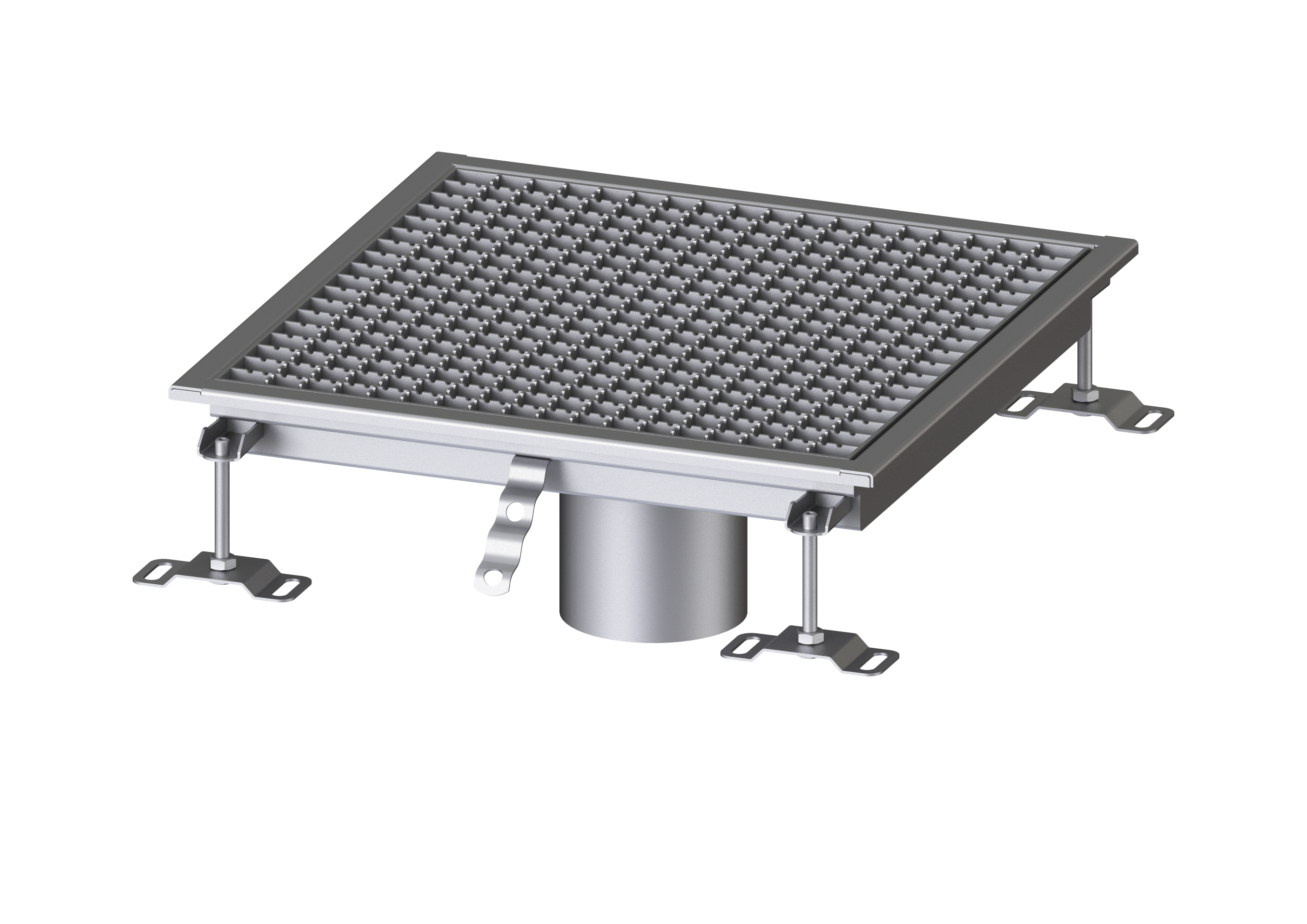 Die Bodenwanne Ferrofix aus Edelstahl mit einer Materialstärke von 2,0 mm (im Tauchbad gebeizt) ist mit geschliffenen Sichtstegen, Längs- und Quergefälle, Standfüßen zur Höhennivellierung sowie mit Auslaufstutzten aus Edelstahl ausgestattet.