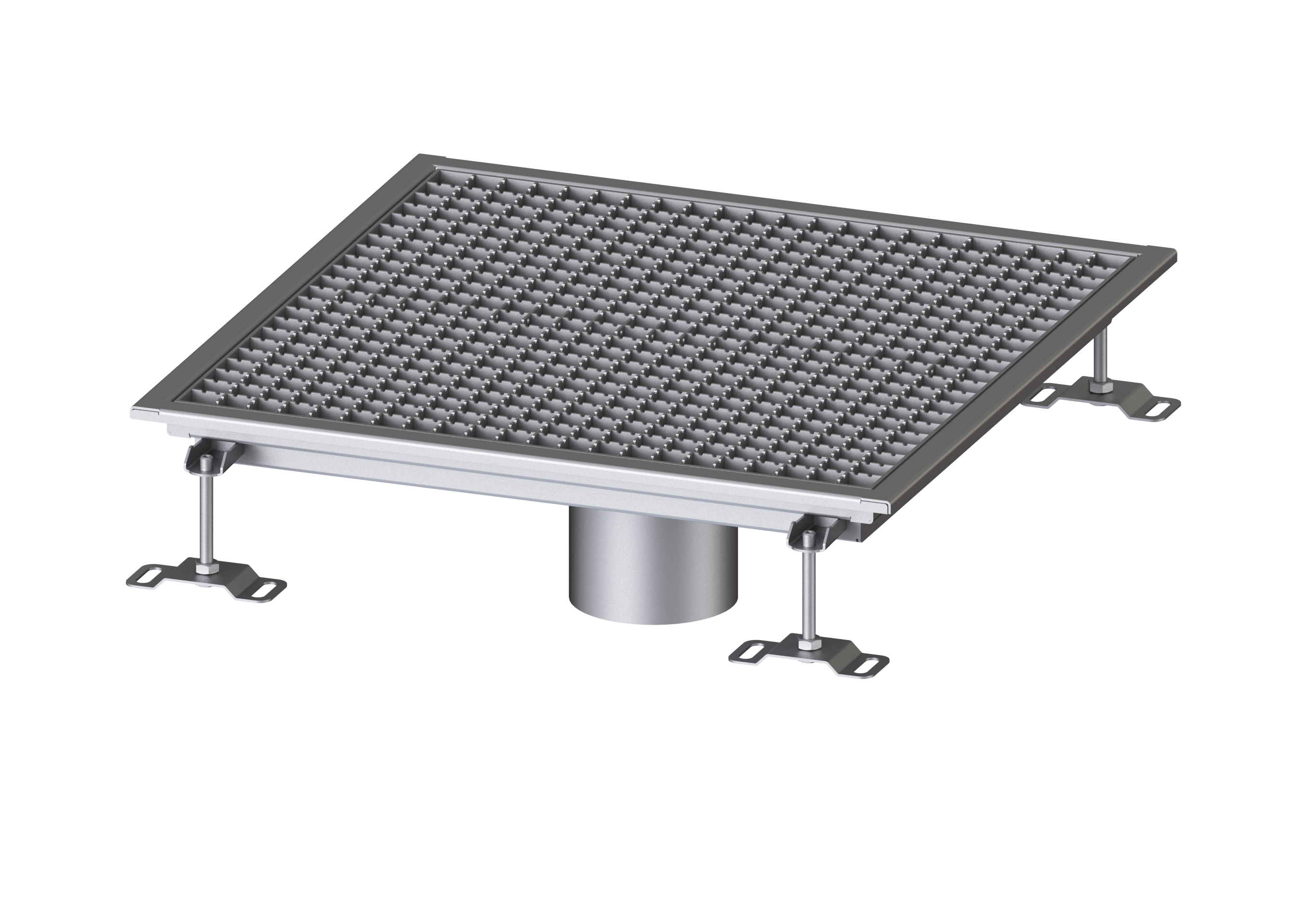 Die Bodenwanne Ferrofix aus Edelstahl mit einer Materialstärke von 2,0 mm (im Tauchbad gebeizt) ist mit geschliffenen Sichtstegen, Längs- und Quergefälle, Standfüßen zur Höhennivellierung sowie mit Auslaufstutzten aus Edelstahl ausgestattet.