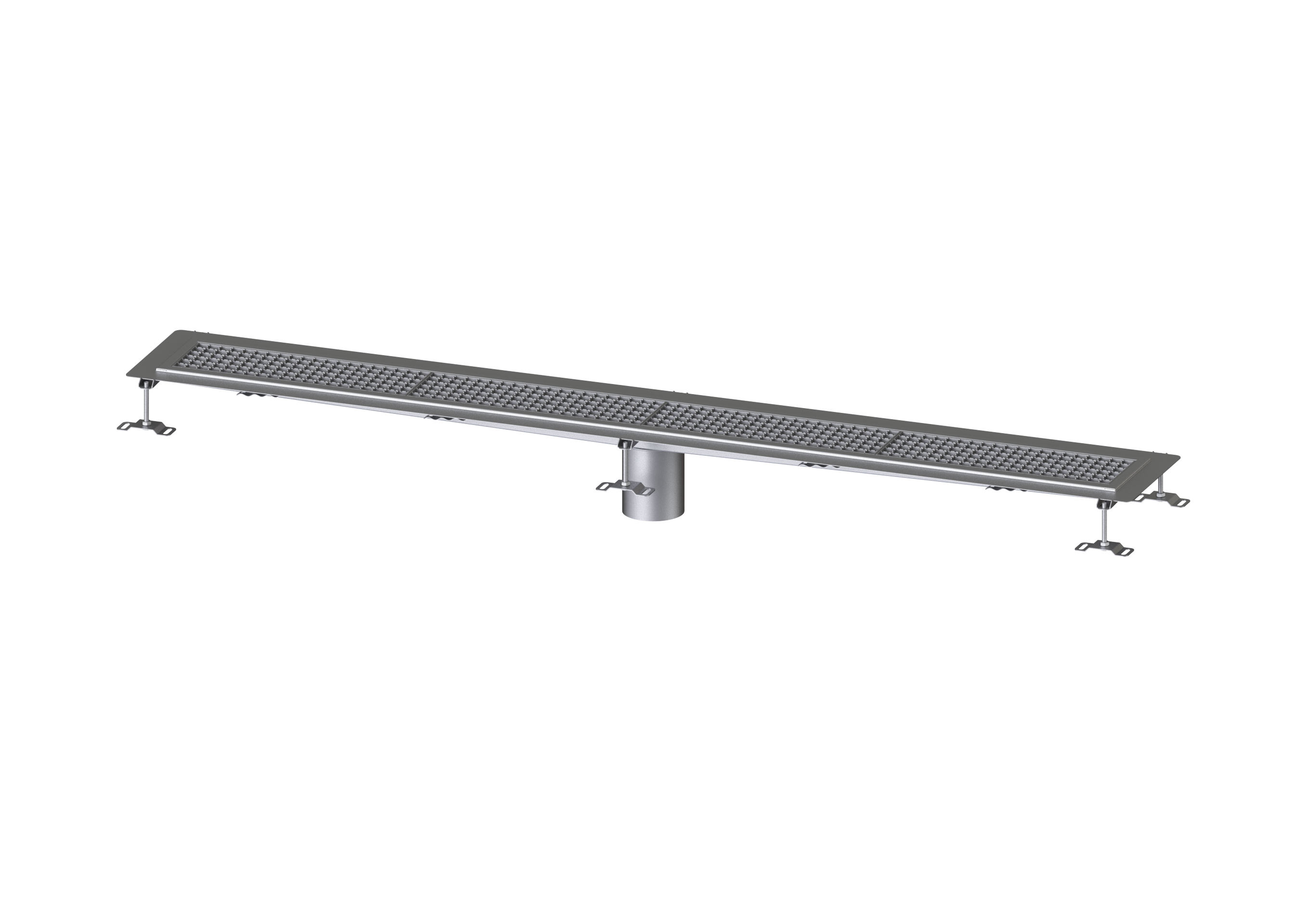 Die Kastenrinne Ferrofix aus Edelstahl mit einer Materialstärke von 1,5 mm (im Tauchbad gebeizt) ist mit geschliffenen Stichtstegen, Längs- und Quergefälle, Standfüßen zur Höhennievellierung sowie mit Auslaufstutzen aus Edelstahl ausgestattet. Das Rinnenprofil ist passend für dünnschichtige Bodenbeläge (z.B. Epoxydharz) und hat einen umlaufenden Kleberand (6 mm tief und 50 mm nach außen abgekantet) mit verschweißten Gehrungen. Der Klebeflansch ist auch geeignet zur Anbindung von Abdichtungen.
