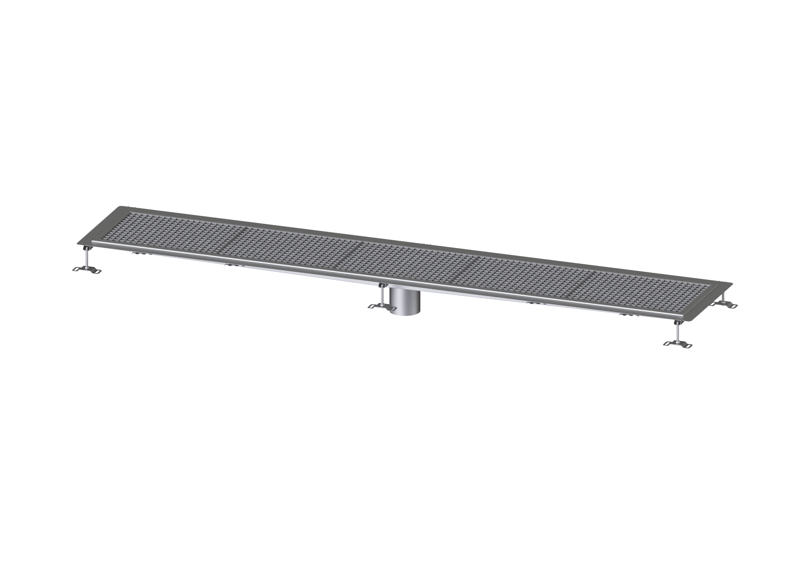 Die Kastenrinne Ferrofix aus Edelstahl mit einer Materialstärke von 1,5 mm (im Tauchbad gebeizt) ist mit geschliffenen Stichtstegen, Längs- und Quergefälle, Standfüßen zur Höhennievellierung sowie mit Auslaufstutzen aus Edelstahl ausgestattet. Das Rinnenprofil ist passend für dünnschichtige Bodenbeläge (z.B. Epoxydharz) und hat einen umlaufenden Kleberand (6 mm tief und 50 mm nach außen abgekantet) mit verschweißten Gehrungen. Der Klebeflansch ist auch geeignet zur Anbindung von Abdichtungen.
