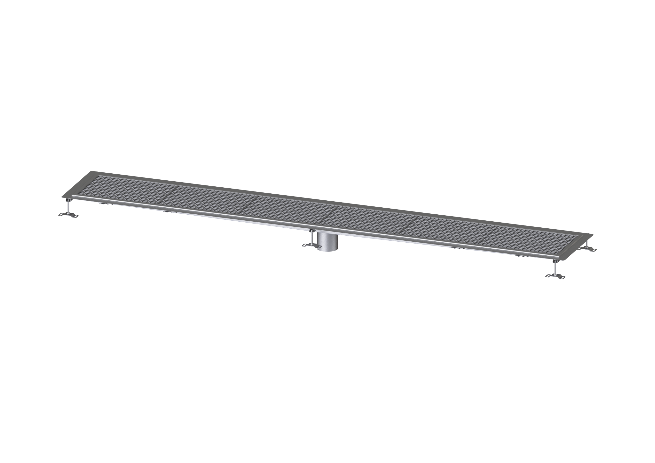Die Kastenrinne Ferrofix aus Edelstahl mit einer Materialstärke von 1,5 mm (im Tauchbad gebeizt) ist mit geschliffenen Stichtstegen, Längs- und Quergefälle, Standfüßen zur Höhennievellierung sowie mit Auslaufstutzen aus Edelstahl ausgestattet. Das Rinnenprofil ist passend für dünnschichtige Bodenbeläge (z.B. Epoxydharz) und hat einen umlaufenden Kleberand (6 mm tief und 50 mm nach außen abgekantet) mit verschweißten Gehrungen. Der Klebeflansch ist auch geeignet zur Anbindung von Abdichtungen.