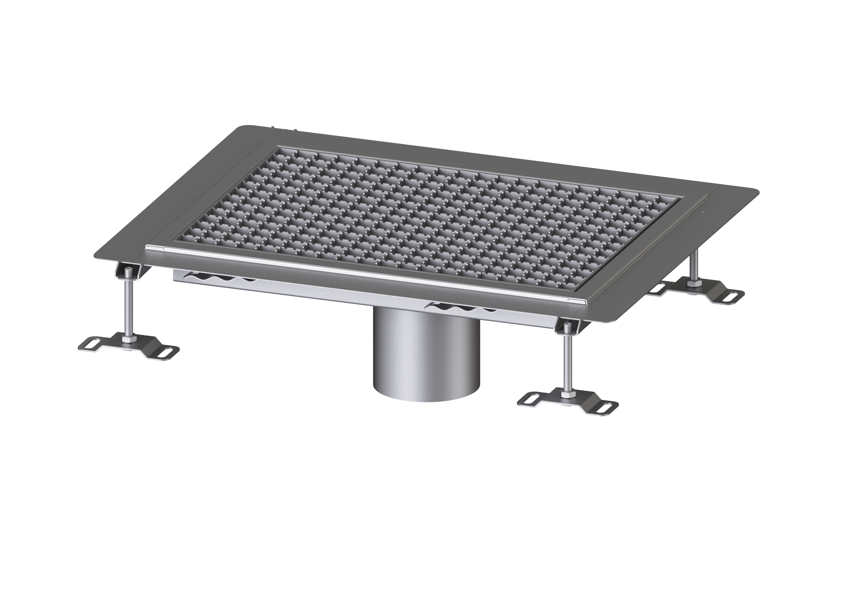 Die Kastenrinne Ferrofix aus Edelstahl mit einer Materialstärke von 1,5 mm (im Tauchbad gebeizt) ist mit geschliffenen Stichtstegen, Längs- und Quergefälle, Standfüßen zur Höhennievellierung sowie mit Auslaufstutzen aus Edelstahl ausgestattet. Das Rinnenprofil ist passend für dünnschichtige Bodenbeläge (z.B. Epoxydharz) und hat einen umlaufenden Kleberand (6 mm tief und 50 mm nach außen abgekantet) mit verschweißten Gehrungen. Der Klebeflansch ist auch geeignet zur Anbindung von Abdichtungen.