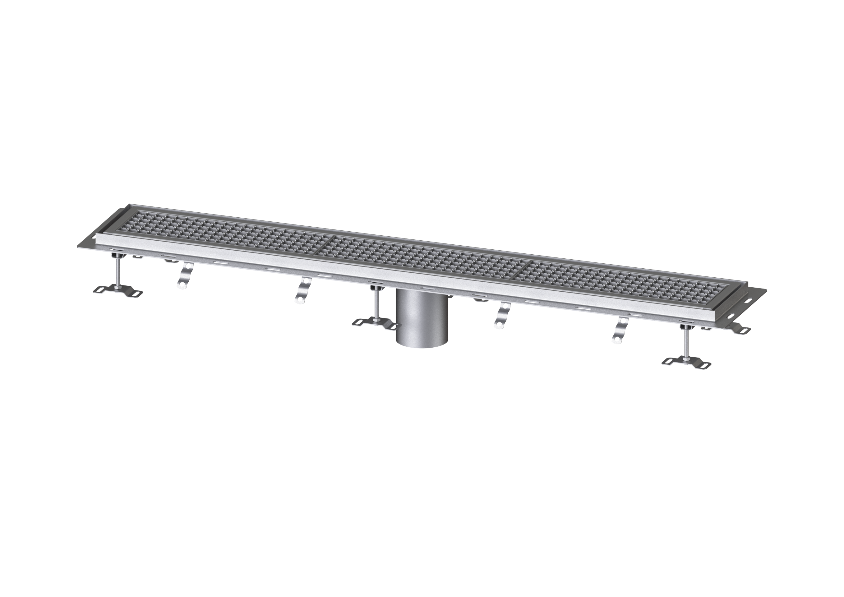 Die Kastenrinne Ferrofix aus Edelstahl mit einer Materialstärke von 2,0 mm (im Tauchbad gebeizt) ist mit geschliffenen Sichtstegen, Längs- und Quergefälle, Standfüßen zur Höhennivellierung sowie mit Auslaufstutzen aus Edelstahl ausgestattet. Das Rinnenprofil ist passend für thermisch hochbelastete Einbausituationen. Der Fliesenanschlusswinkel dient zum Schutz gegen Fliesenbruch im Randbereich.