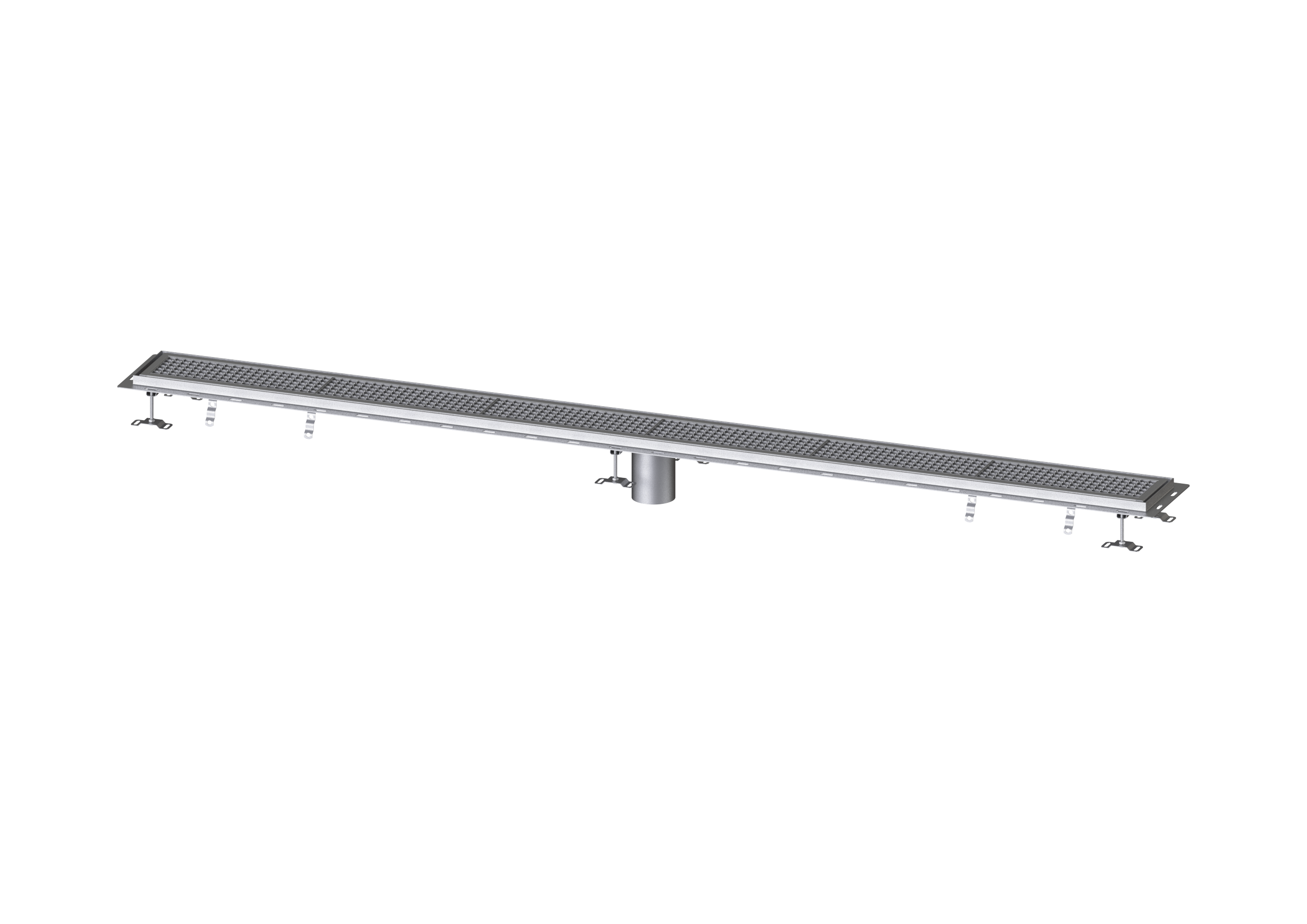 Die Kastenrinne Ferrofix aus Edelstahl mit einer Materialstärke von 2,0 mm (im Tauchbad gebeizt) ist mit geschliffenen Sichtstegen, Längs- und Quergefälle, Standfüßen zur Höhennivellierung sowie mit Auslaufstutzen aus Edelstahl ausgestattet. Das Rinnenprofil ist passend für thermisch hochbelastete Einbausituationen. Der Fliesenanschlusswinkel dient zum Schutz gegen Fliesenbruch im Randbereich.