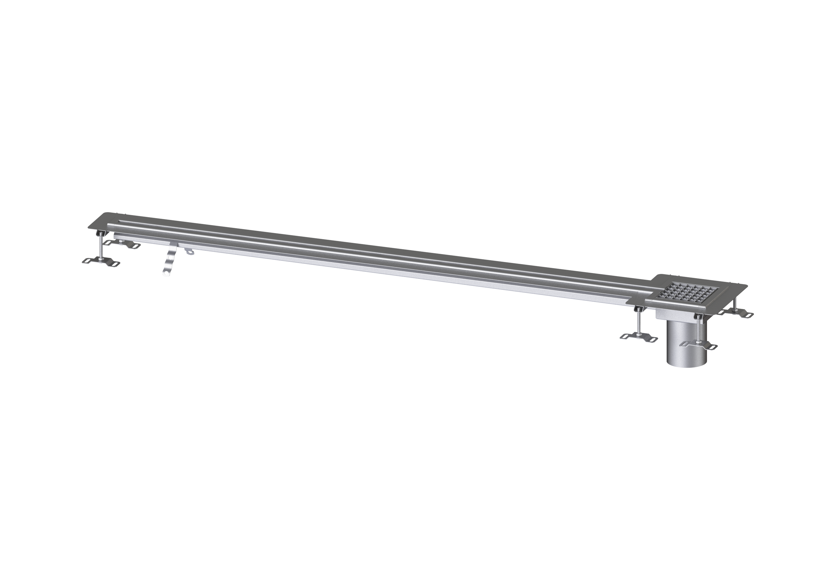 Die Schlitzrinne Ferrofix aus Edelstahl mit einer Materialstärke von 1,5 mm (im Tauchbad gebeizt) ist mit geschliffenen Stichtstegen, Längs- und Quergefälle, Standfüßen zur Höhennievellierung sowie mit Auslaufstutzen aus Edelstahl ausgestattet. Das Rinnenprofil ist passend für dünnschichtige Bodenbeläge (z.B. Epoxydharz) und hat einen umlaufenden Kleberand (6 mm tief und 50 mm nach außen abgekantet) mit verschweißten Gehrungen. Der Klebeflansch ist auch geeignet zur Anbindung von Abdichtungen.