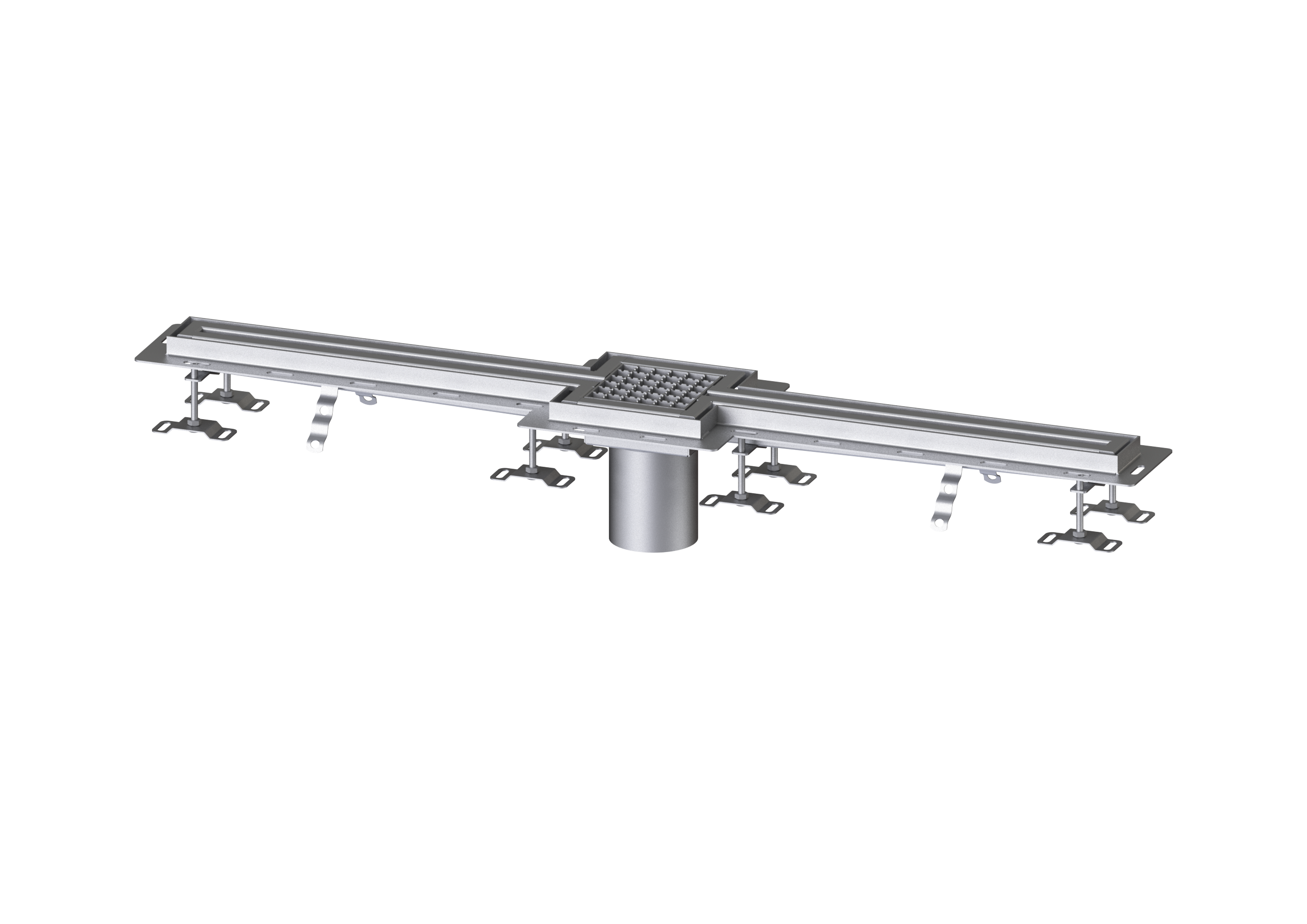Die Schlitzrinne Ferrofix aus Edelstahl mit einer Materialstärke von 2,0 mm (im Tauchbad gebeizt) ist mit geschliffenen Sichtstegen, Längs- und Quergefälle, Standfüßen zur Höhennivellierung sowie mit Auslaufstutzen aus Edelstahl ausgestattet. Das Rinnenprofil ist passend für thermisch hochbelastete Einbausituationen. Der Fliesenanschlusswinkel dient zum Schutz gegen Fliesenbruch im Randbereich.
