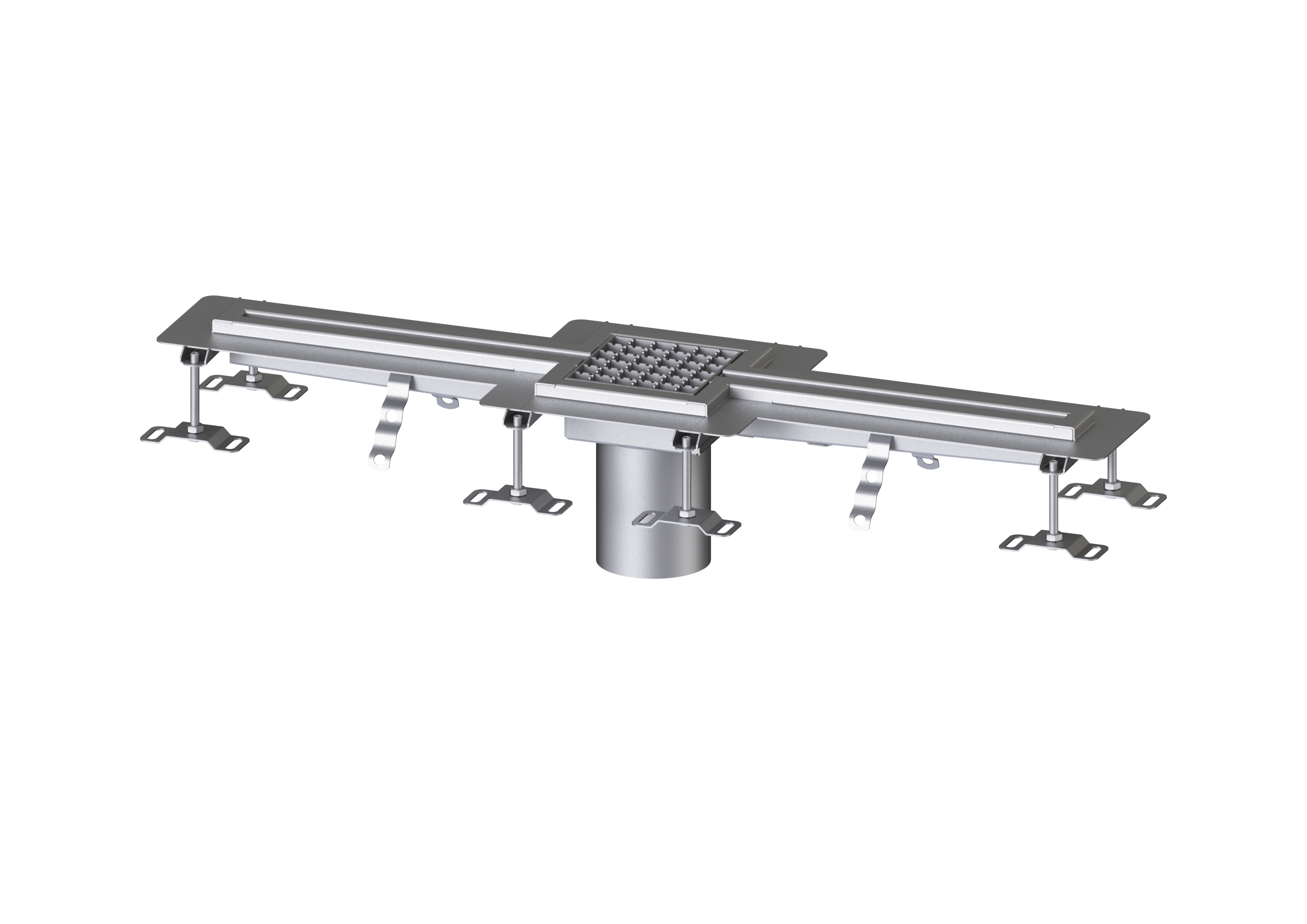 Die Schlitzrinne Ferrofix aus Edelstahl mit einer Materialstärke von 2,0 mm (im Tauchbad gebeizt) ist mit geschliffenen Sichtstegen, Längs- und Quergefälle, Standfüßen zur Höhennivellierung sowie mit Auslaufstutzten aus Edelstahl ausgestattet. Das Rinnenprofil ist passend für Abdichtung im Verbund und hat einen umlaufenden Kleberand (15 mm tief und 50 mm nach außen abgekantet) mit verschweißten Gehrungen. Der Klebeflansch ist geeignet zur Anbindung von Abdichtungen im Verbund, gemäß DIN 18534, für alle Wassereinwirkungsklassen.