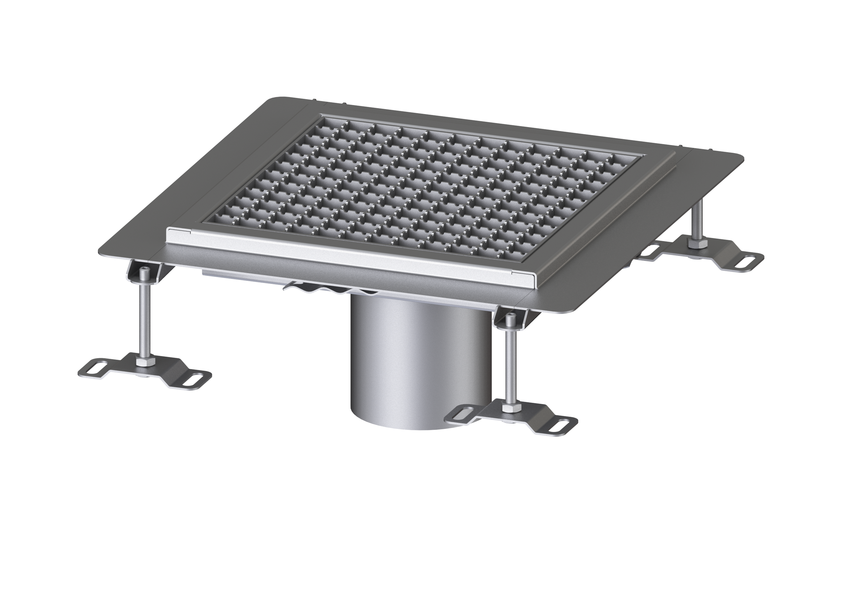 Die Bodenwanne Ferrofix aus Edelstahl mit einer Materialstärke von 2,0 mm (im Tauchbad gebeizt) ist mit geschliffenen Sichtstegen, Längs- und Quergefälle, Standfüßen zur Höhennivellierung sowie mit Auslaufstutzten aus Edelstahl ausgestattet. Das Rinnenprofil ist passend für Abdichtung im Verbund und hat einen umlaufenden Kleberand (15 mm tief und 50 mm nach außen abgekantet) mit verschweißten Gehrungen. Der Klebeflansch ist geeignet zur Anbindung von Abdichtungen im Verbund, gemäß DIN 18534, für alle Wassereinwirkungsklassen.