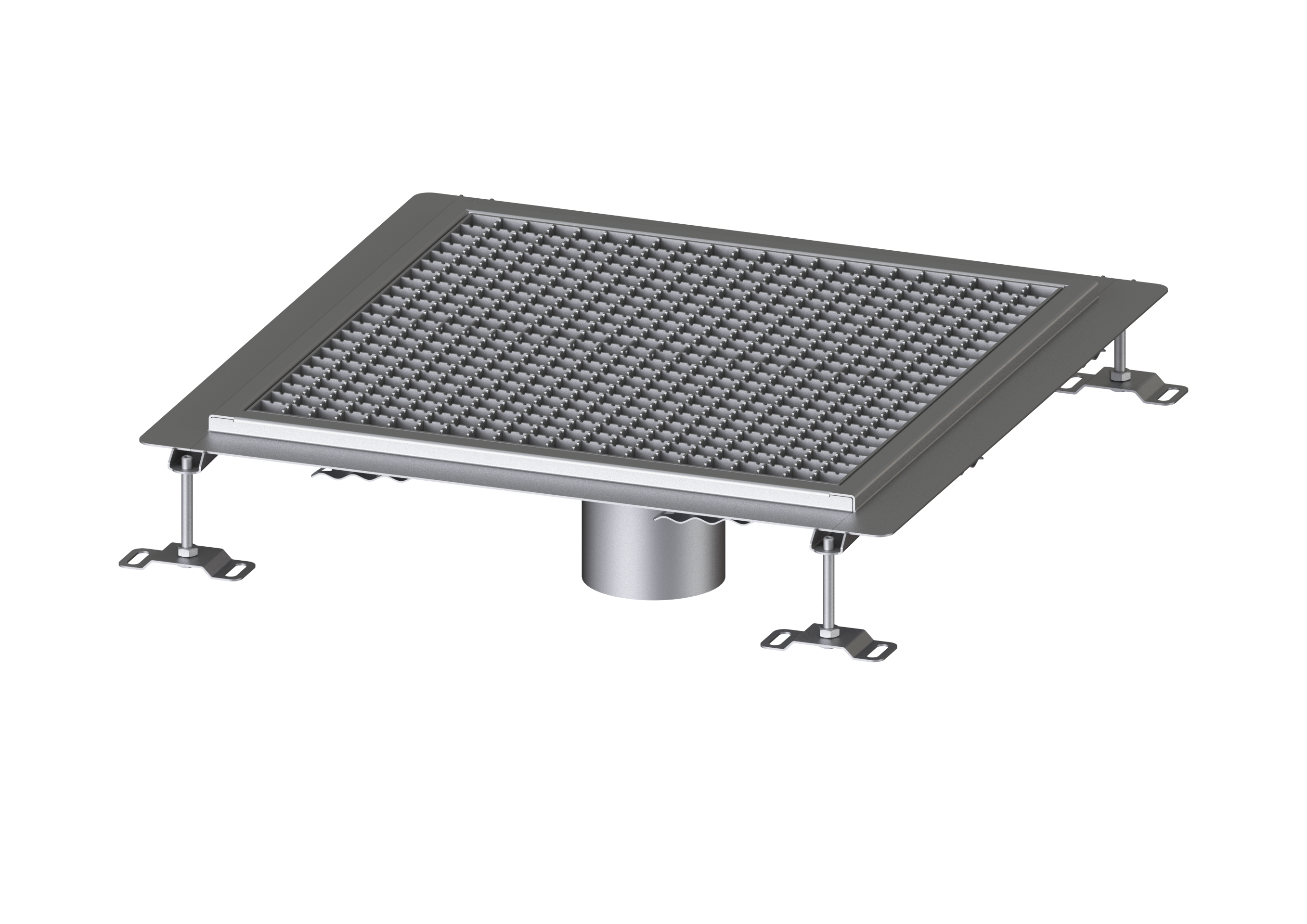 Die Bodenwanne Ferrofix aus Edelstahl mit einer Materialstärke von 2,0 mm (im Tauchbad gebeizt) ist mit geschliffenen Sichtstegen, Längs- und Quergefälle, Standfüßen zur Höhennivellierung sowie mit Auslaufstutzten aus Edelstahl ausgestattet. Das Rinnenprofil ist passend für Abdichtung im Verbund und hat einen umlaufenden Kleberand (15 mm tief und 50 mm nach außen abgekantet) mit verschweißten Gehrungen. Der Klebeflansch ist geeignet zur Anbindung von Abdichtungen im Verbund, gemäß DIN 18534, für alle Wassereinwirkungsklassen.