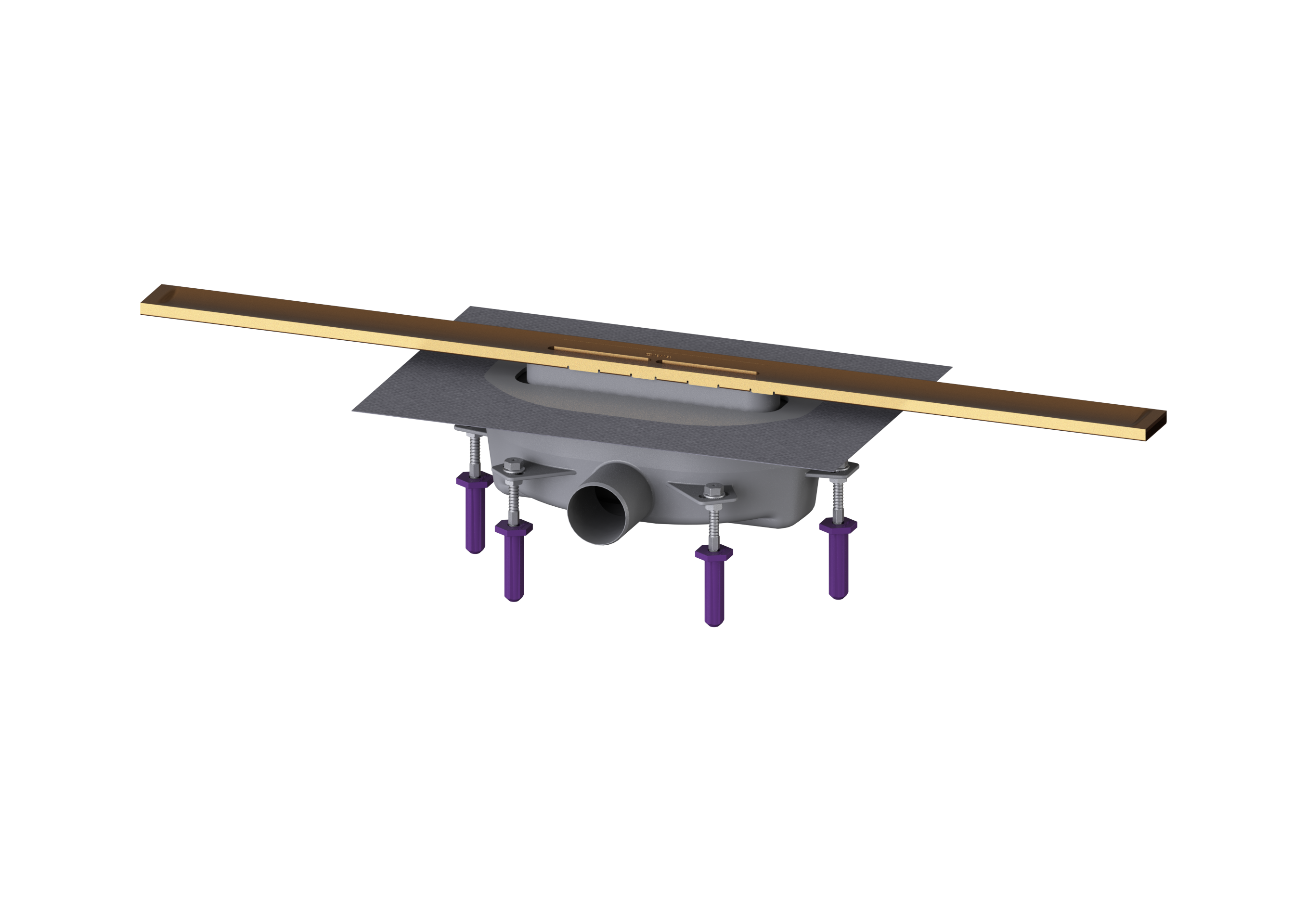 Die schmale, bodengleiche Duschrinne Linearis Infinity ist für die Linienentwässerung im Innenbereich für den häuslichen und gewerblichen Bereich geeignet. Das Rinnenprofil aus Edelstahl 1.4404 (V4A) ist gerade oder in drei Winkeln (30, 45 und 90 Grad) verlängerbar. Der Grundkörper aus PP ist mit Schall- und Setzungsdämpfern ausgestattet. Diese vermindern Betriebsgeräusche und können Setzungen des Bodenaufbaus ausgleichen. Die Rinne enthält einen Klipsflansch mit werkseitig angebrachter Dichtmanschette nach DIN EN 1253-1 und DIN 18534-1-W3-I. Das Rinnenprofil kann zum Ausgleich von Bautoleranzen im Klipsflansch in Längs- und Querrichtung verschoben werden. Inklusive Geruchsverschluss mit 50 mm Wasservorlage. Sickerwasseröffnungen offen, ohne ein Fluten der Abdichtungsebene bei Aufstau.