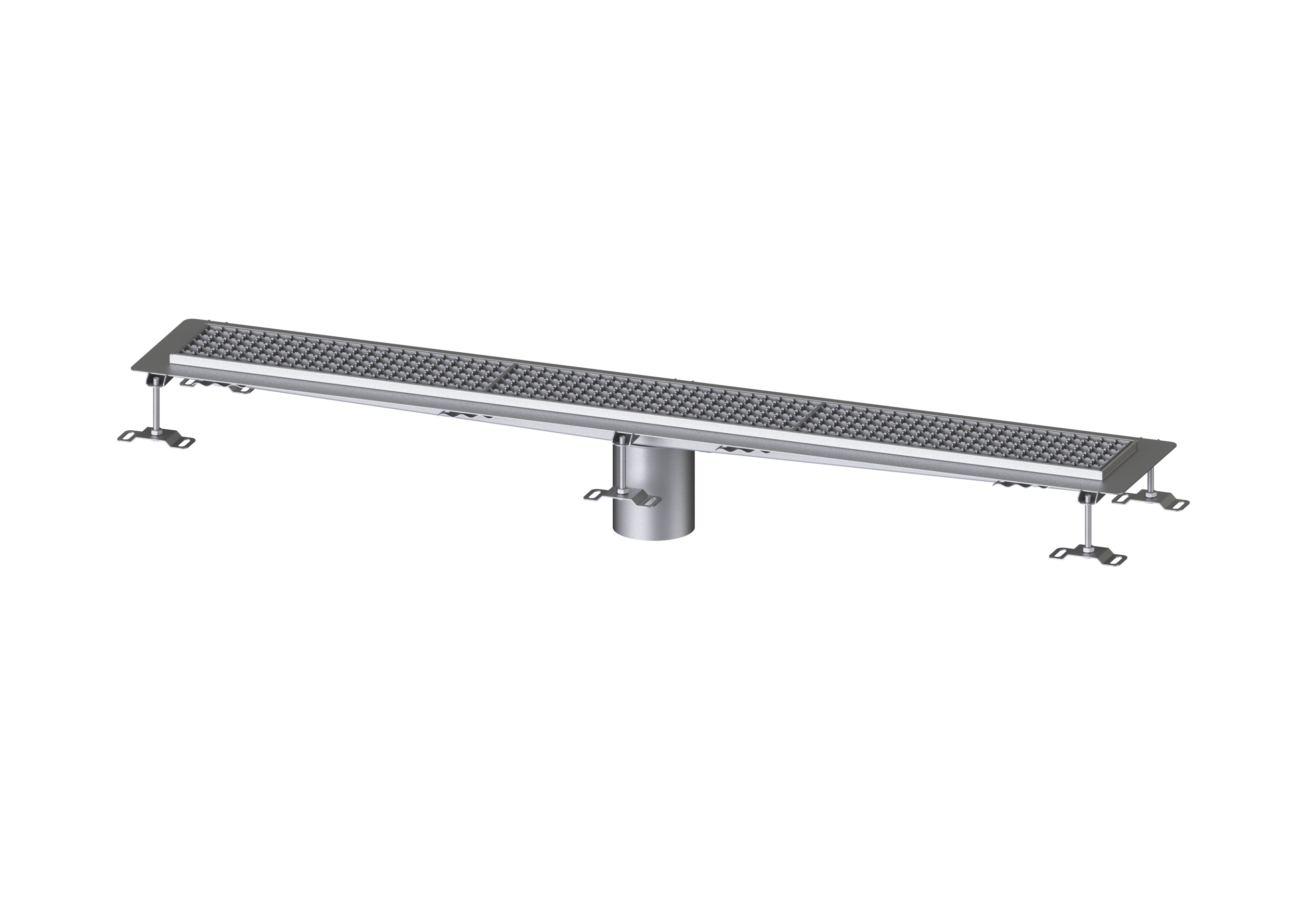 Die Kastenrinne Ferrofix aus Edelstahl mit einer Materialstärke von 2,0 mm (im Tauchbad gebeizt) ist mit geschliffenen Sichtstegen, Längs- und Quergefälle, Standfüßen zur Höhennivellierung sowie mit Auslaufstutzten aus Edelstahl ausgestattet. Das Rinnenprofil ist passend für Abdichtung im Verbund und hat einen umlaufenden Kleberand (15 mm tief und 50 mm nach außen abgekantet) mit verschweißten Gehrungen. Der Klebeflansch ist geeignet zur Anbindung von Abdichtungen im Verbund, gemäß DIN 18534, für alle Wassereinwirkungsklassen.