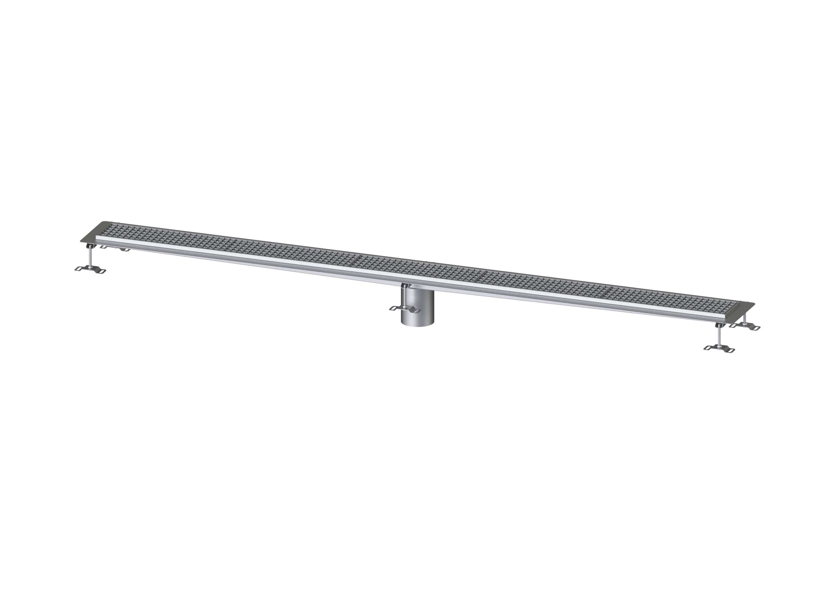 Die Kastenrinne Ferrofix aus Edelstahl mit einer Materialstärke von 2,0 mm (im Tauchbad gebeizt) ist mit geschliffenen Sichtstegen, Längs- und Quergefälle, Standfüßen zur Höhennivellierung sowie mit Auslaufstutzten aus Edelstahl ausgestattet. Das Rinnenprofil ist passend für Abdichtung im Verbund und hat einen umlaufenden Kleberand (15 mm tief und 50 mm nach außen abgekantet) mit verschweißten Gehrungen. Der Klebeflansch ist geeignet zur Anbindung von Abdichtungen im Verbund, gemäß DIN 18534, für alle Wassereinwirkungsklassen.