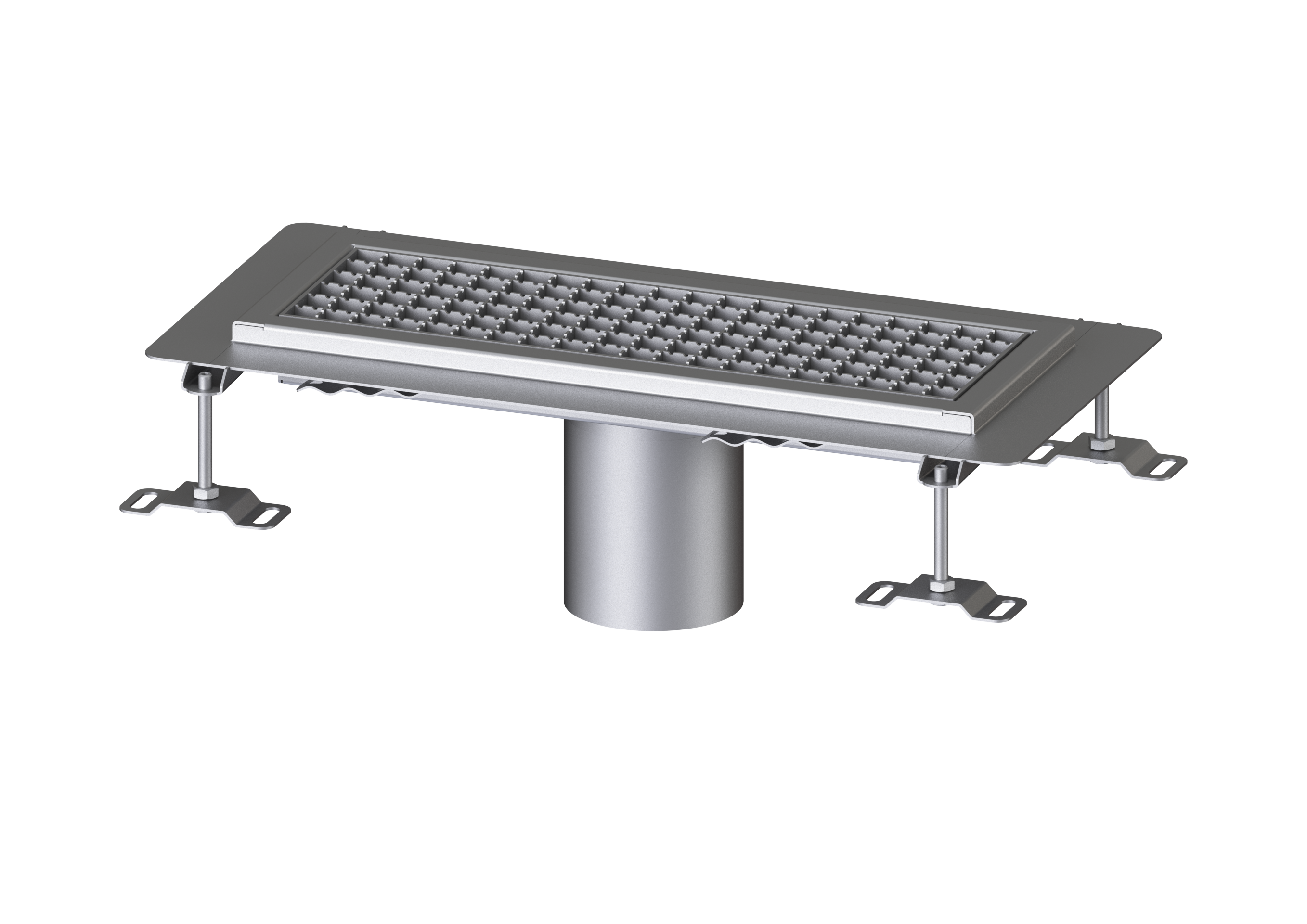 Die Kastenrinne Ferrofix aus Edelstahl mit einer Materialstärke von 2,0 mm (im Tauchbad gebeizt) ist mit geschliffenen Sichtstegen, Längs- und Quergefälle, Standfüßen zur Höhennivellierung sowie mit Auslaufstutzten aus Edelstahl ausgestattet. Das Rinnenprofil ist passend für Abdichtung im Verbund und hat einen umlaufenden Kleberand (15 mm tief und 50 mm nach außen abgekantet) mit verschweißten Gehrungen. Der Klebeflansch ist geeignet zur Anbindung von Abdichtungen im Verbund, gemäß DIN 18534, für alle Wassereinwirkungsklassen.