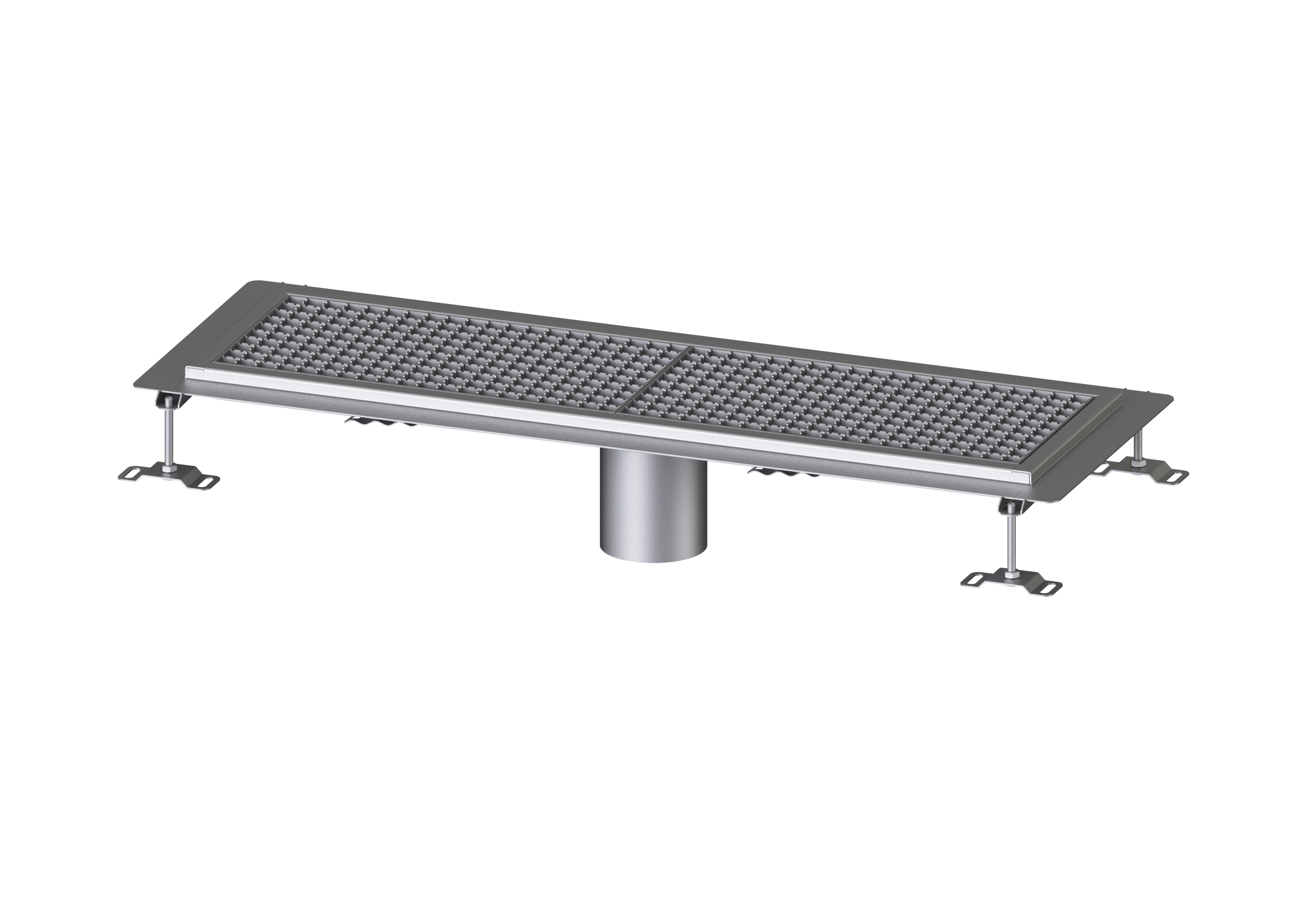Die Kastenrinne Ferrofix aus Edelstahl mit einer Materialstärke von 2,0 mm (im Tauchbad gebeizt) ist mit geschliffenen Sichtstegen, Längs- und Quergefälle, Standfüßen zur Höhennivellierung sowie mit Auslaufstutzten aus Edelstahl ausgestattet. Das Rinnenprofil ist passend für Abdichtung im Verbund und hat einen umlaufenden Kleberand (15 mm tief und 50 mm nach außen abgekantet) mit verschweißten Gehrungen. Der Klebeflansch ist geeignet zur Anbindung von Abdichtungen im Verbund, gemäß DIN 18534, für alle Wassereinwirkungsklassen.