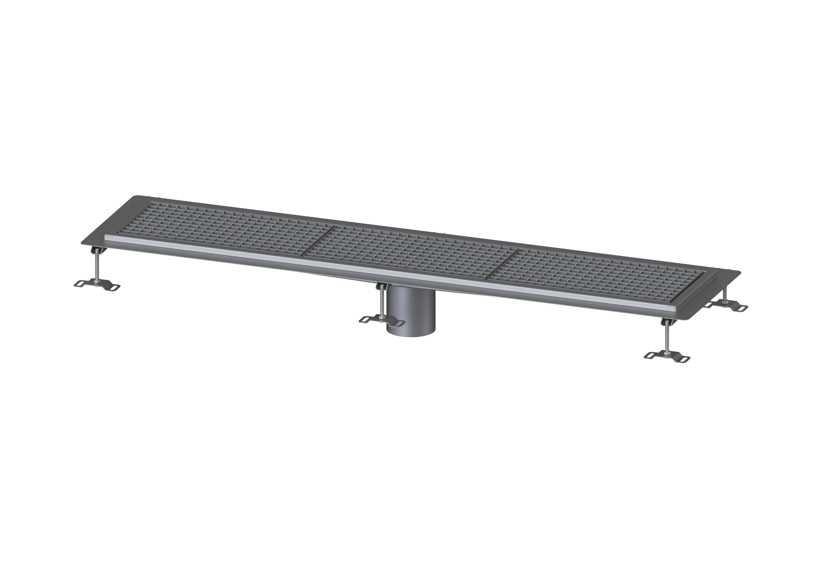 Die Kastenrinne Ferrofix aus Edelstahl mit einer Materialstärke von 2,0 mm (im Tauchbad gebeizt) ist mit geschliffenen Sichtstegen, Längs- und Quergefälle, Standfüßen zur Höhennivellierung sowie mit Auslaufstutzten aus Edelstahl ausgestattet. Das Rinnenprofil ist passend für Abdichtung im Verbund und hat einen umlaufenden Kleberand (15 mm tief und 50 mm nach außen abgekantet) mit verschweißten Gehrungen. Der Klebeflansch ist geeignet zur Anbindung von Abdichtungen im Verbund, gemäß DIN 18534, für alle Wassereinwirkungsklassen.