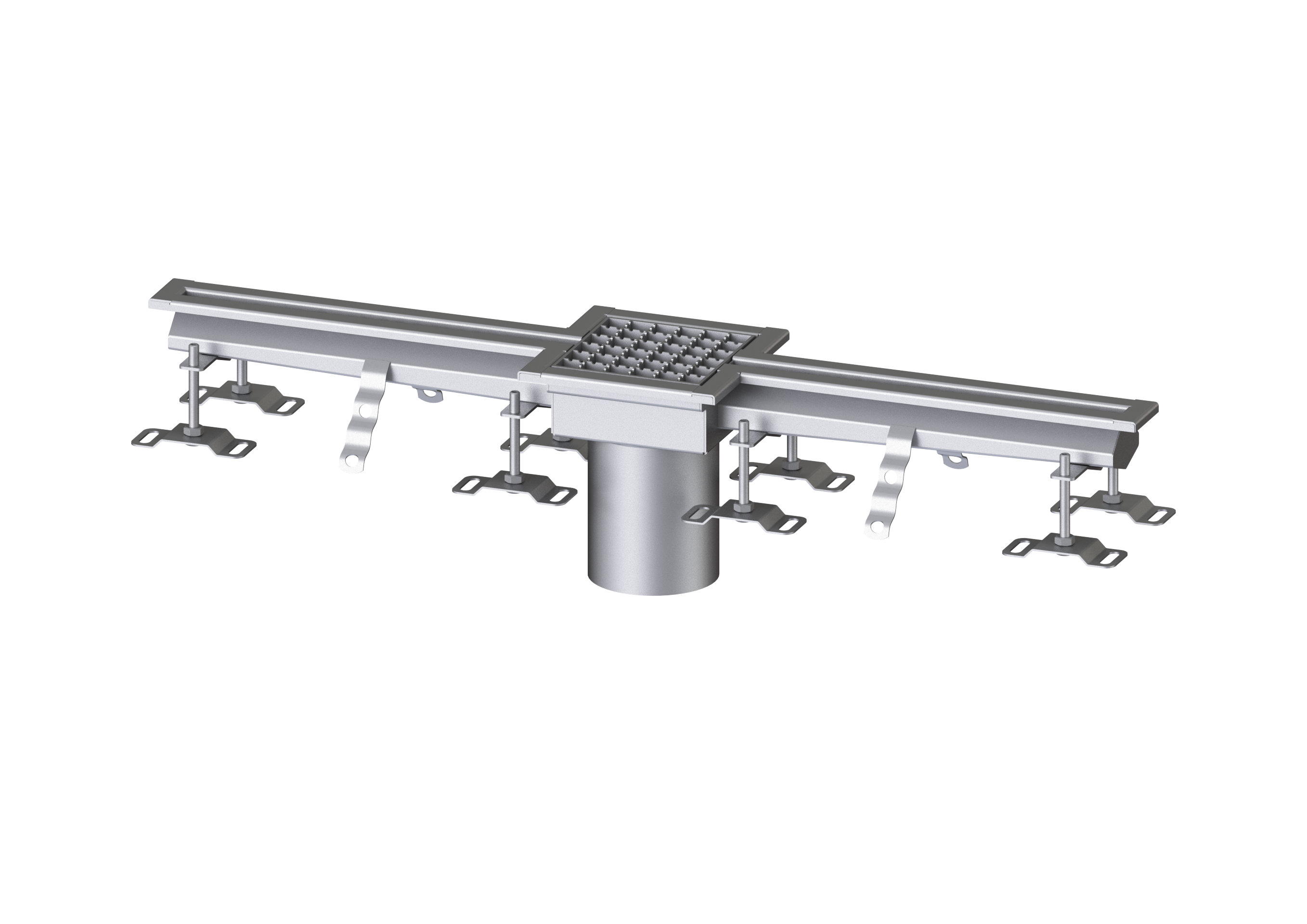Die Schlitzrinne Ferrofix aus Edelstahl mit einer Materialstärke von 2,0 mm (im Tauchbad gebeizt) ist mit geschliffenen Sichtstegen, Längs- und Quergefälle, Standfüßen zur Höhennivellierung sowie mit Auslaufstutzten aus Edelstahl ausgestattet.