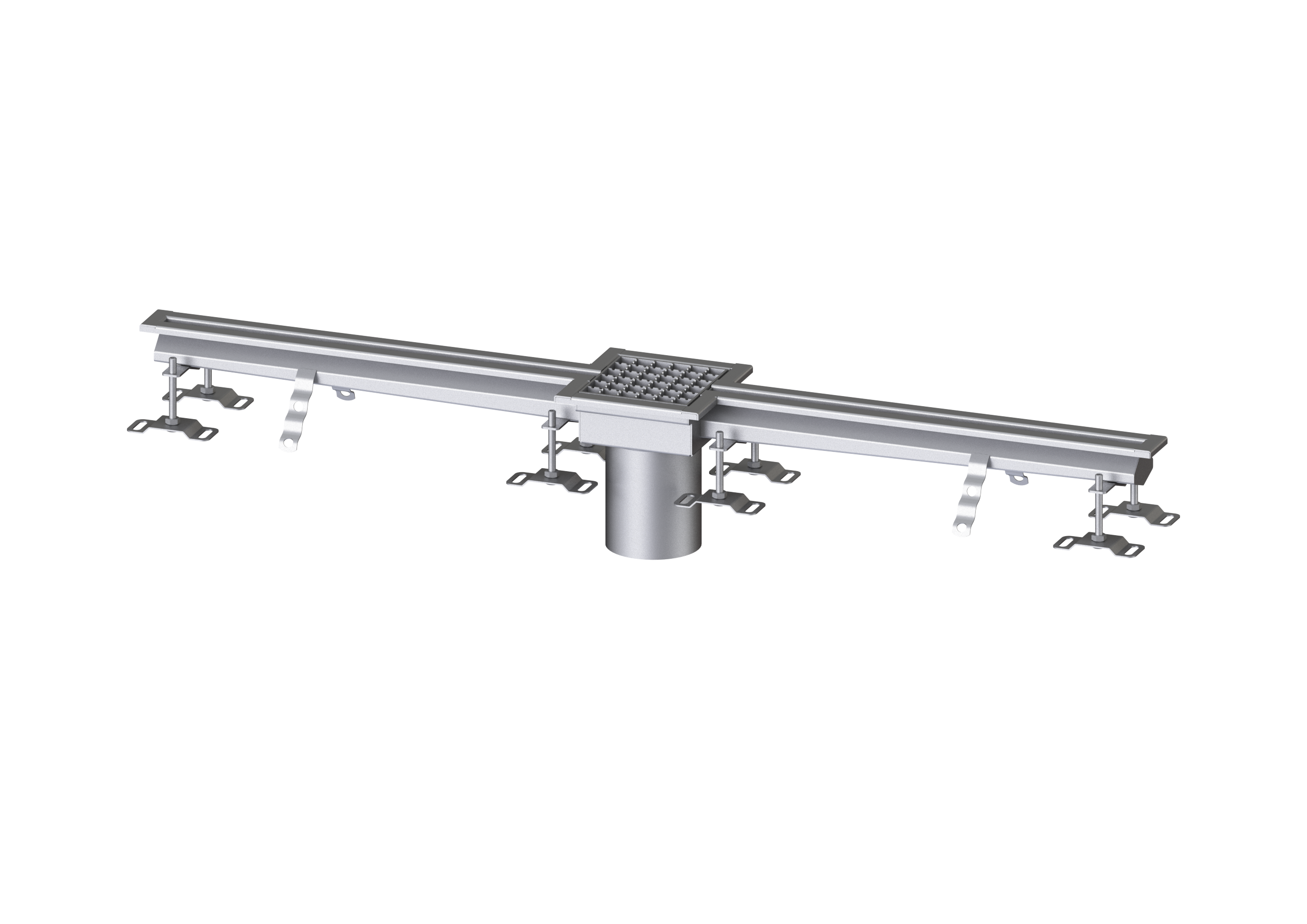 Die Schlitzrinne Ferrofix aus Edelstahl mit einer Materialstärke von 2,0 mm (im Tauchbad gebeizt) ist mit geschliffenen Sichtstegen, Längs- und Quergefälle, Standfüßen zur Höhennivellierung sowie mit Auslaufstutzten aus Edelstahl ausgestattet.