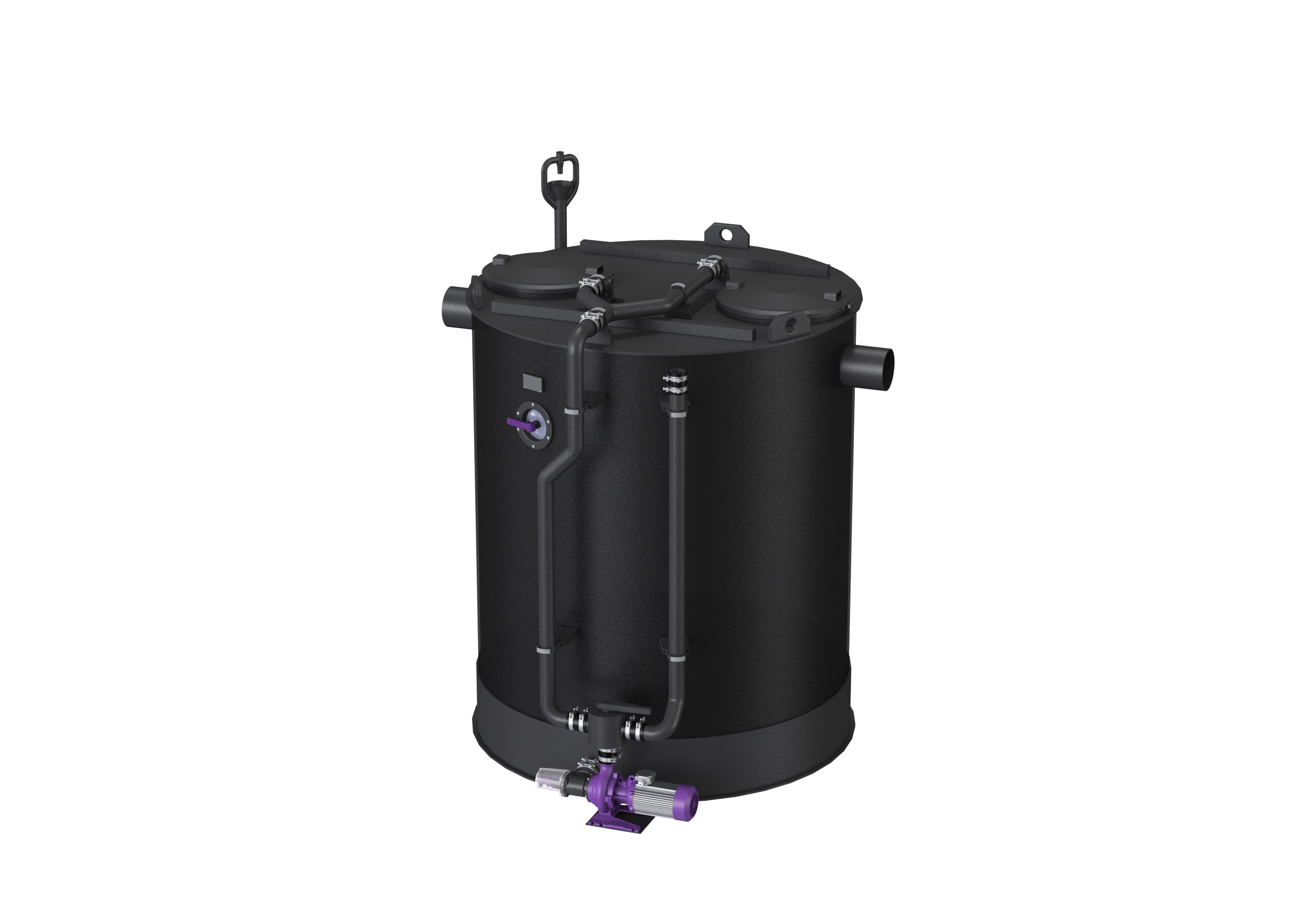 Der Abscheider für fetthaltiges Abwasser ist für die freie Aufstellung in frostgeschützten Räumen geeignet und verzichtet auf metallische Bauteile im Behälter. Der Sammelbehälter aus dauerhaft beständigem Kunststoff (PE) ist mit einem integrierten Schlammfang ausgestattet und besitzt ein konisch zulaufendes Bodenteil für eine schnelle und saubere Entsorgung. Zwei geruchsdichte Deckel mit Schnellspannverschlüssen ermöglichen einen einfachen Zugang für Reinigungs- und Wartungsarbeiten. Das innovative Schredder-Mix-System mit integriertem Zerhacker übernimmt die Homogenisierung und Umwälzung des Behälterinhaltes. Die Reinigung und geruchsneutrale Entsorgung erfolgt dabei über eine außenliegende Pumpe mit 2-Wege-Ventil und Umschalthebel, die mit einem Absperrschieber vom Behälter getrennt werden kann. Nach der Entsorgung sind nur noch max. 3 Liter Schlammrestvolumen im Behälter vorhanden. Die manuelle Steuerung erfolgt durch ein anwenderfreundliches Schaltgerät, das über einen potentialfreien Kontakt in die Gebäudeleittechnik eingebunden werden kann. Gewährleistung auf den Werkstoff PE 20 Jahre.