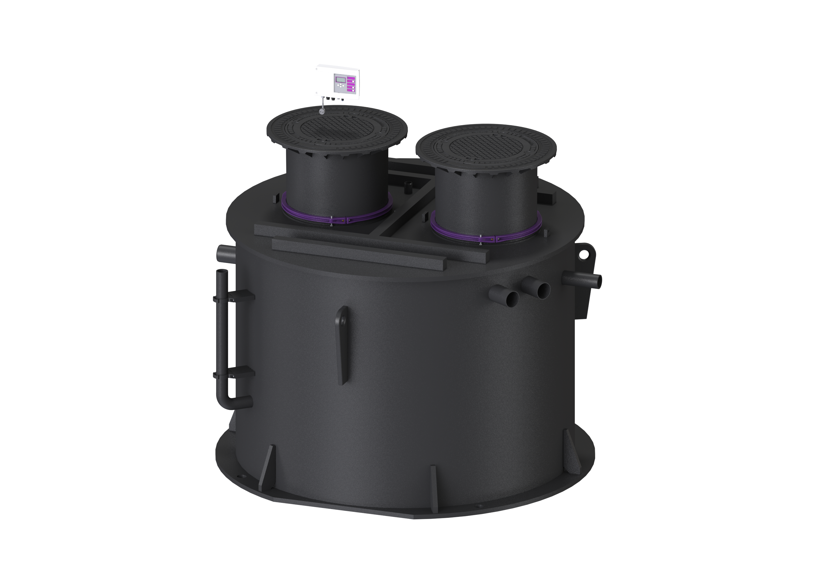 Die Anlage zum Einbau ins Erdreich besteht aus einer Kombination aus einem Abscheider für fetthaltiges Abwasser inkl. Schlammfang, einer Probenahmeeinrichtung sowie einer Pumpstation.