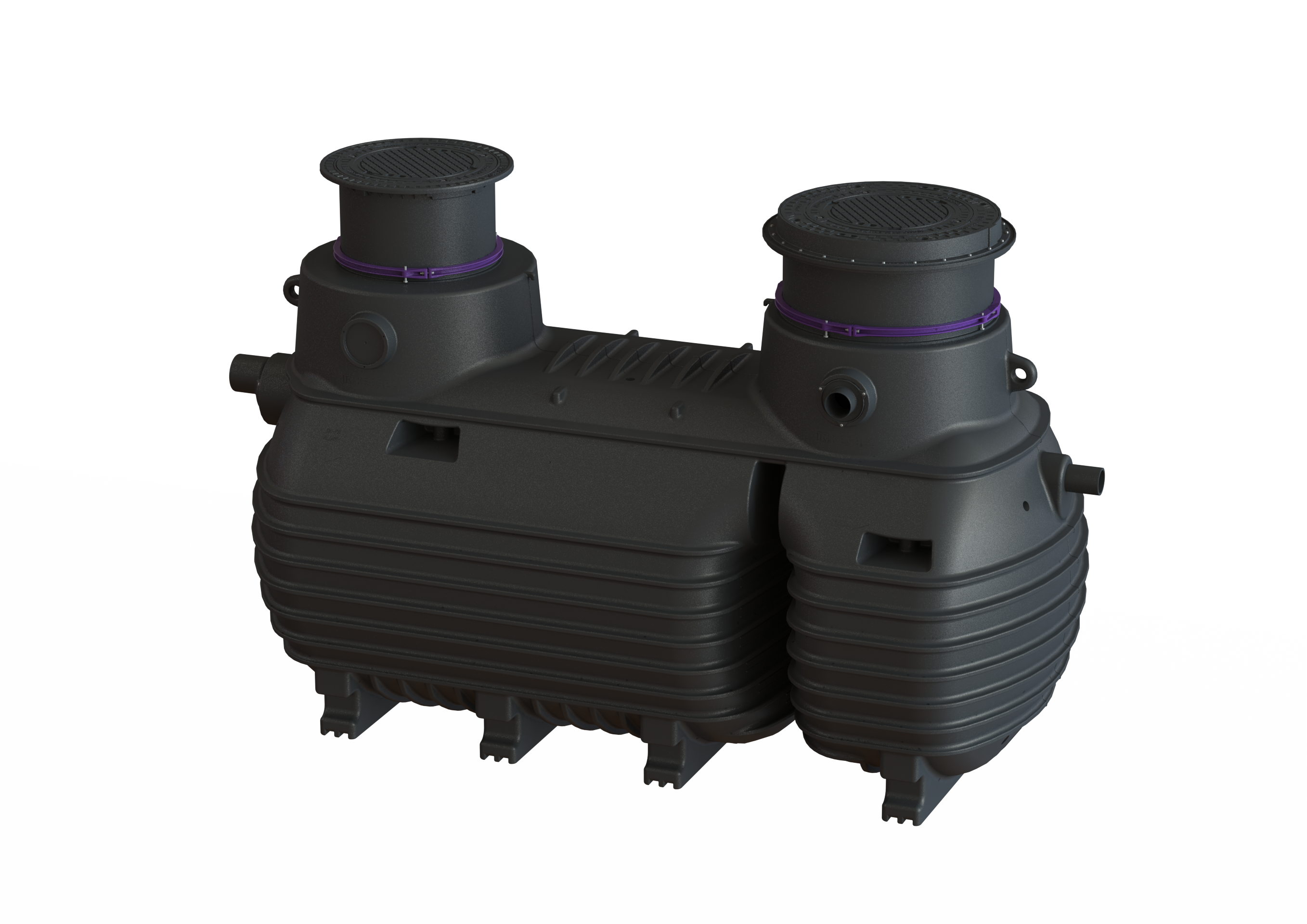 Die Anlage zum Einbau ins Erdreich besteht aus einer Kombination aus einem Abscheider für fetthaltiges Abwasser inkl. Schlammfang, einer Probenahmeeinrichtung sowie einer Pumpstation.