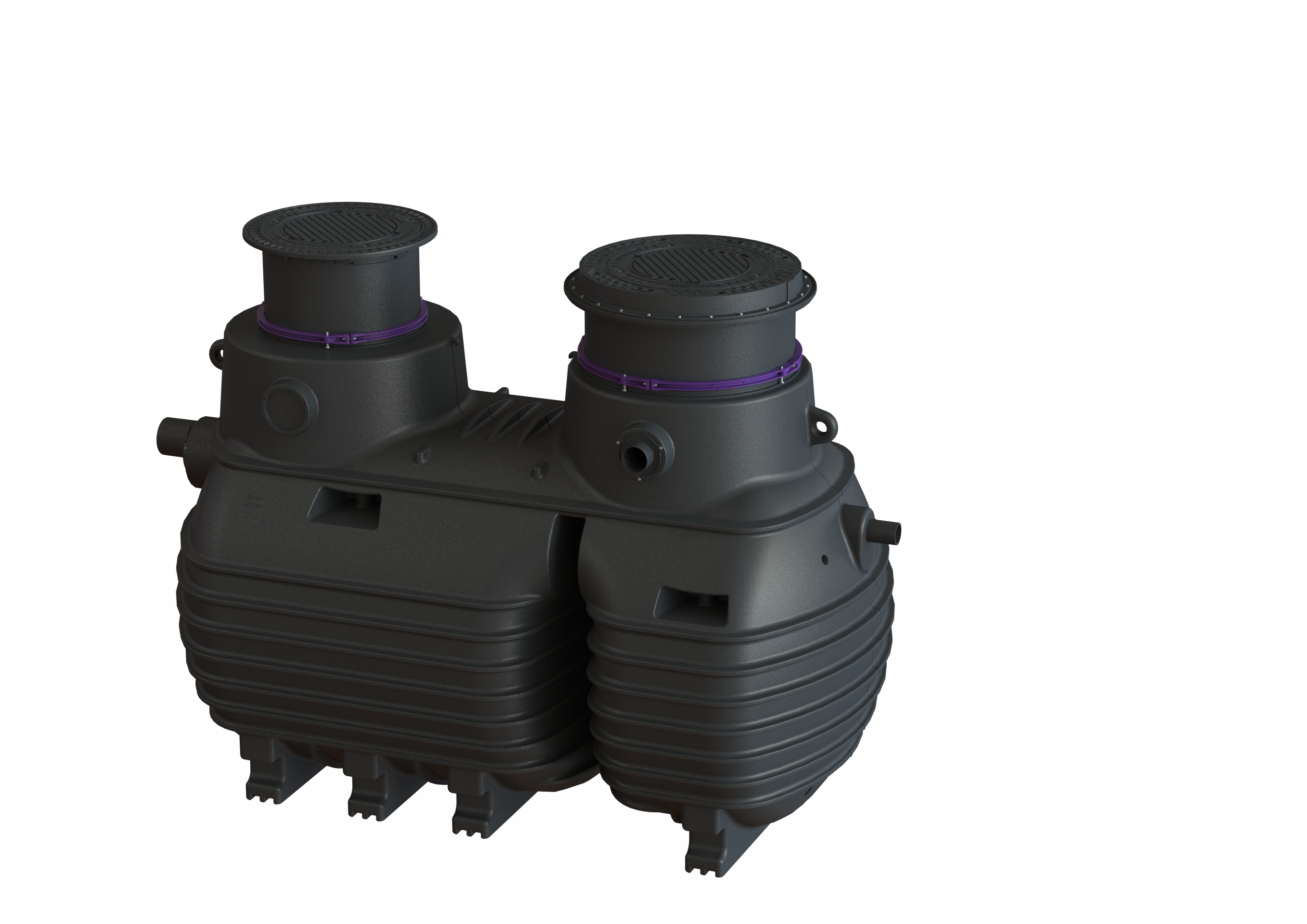 Der Behälter aller Anlagenteile ist aus dauerhaft beständigem Kunststoff (PE) gefertigt.