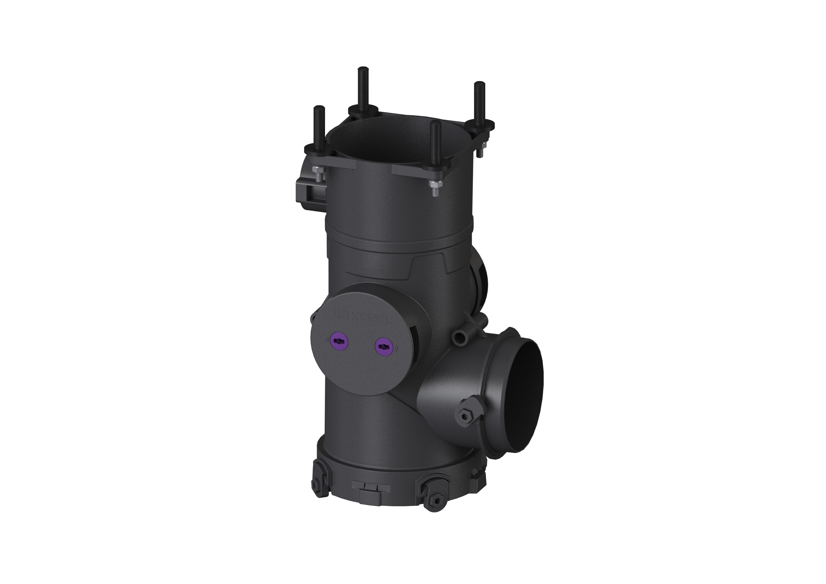 CleverLoop lässt sich problemlos an verschiedene Druckanschlüsse (DN 50-100) unterhalb der Rückstauebene in der Freispiegelentwässerung mit Muffen- und Stutzendimensionen (DN 90-200) anpassen (Stutzen, Muffe und Druckanschluss nicht im Lieferumfang enthalten).