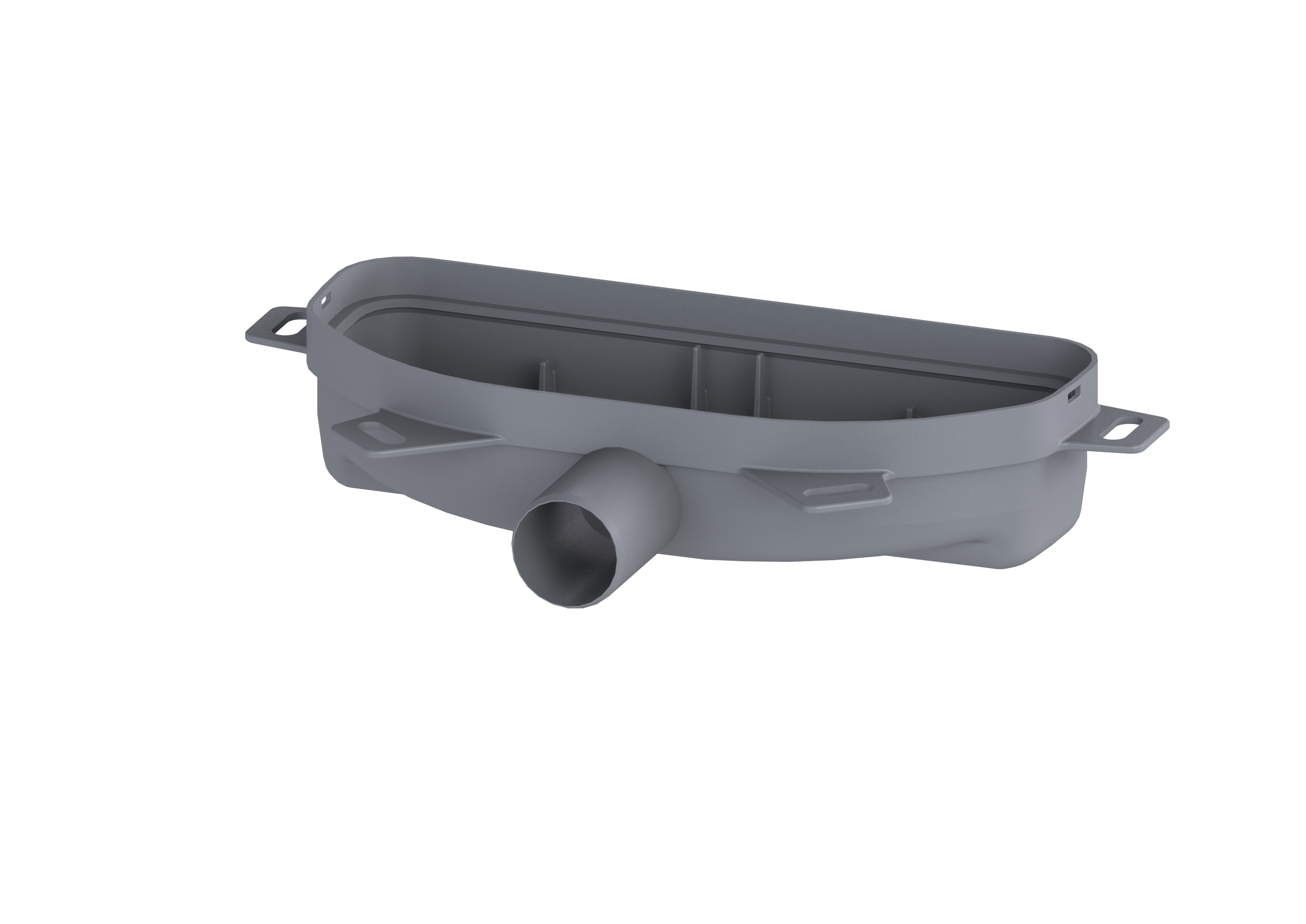 Grundkörper für Linearis Infinity Bauhöhe 60 mm mit seitlichem Auslauf DN 40, ohne Schall- und Setzungsdämpfer.