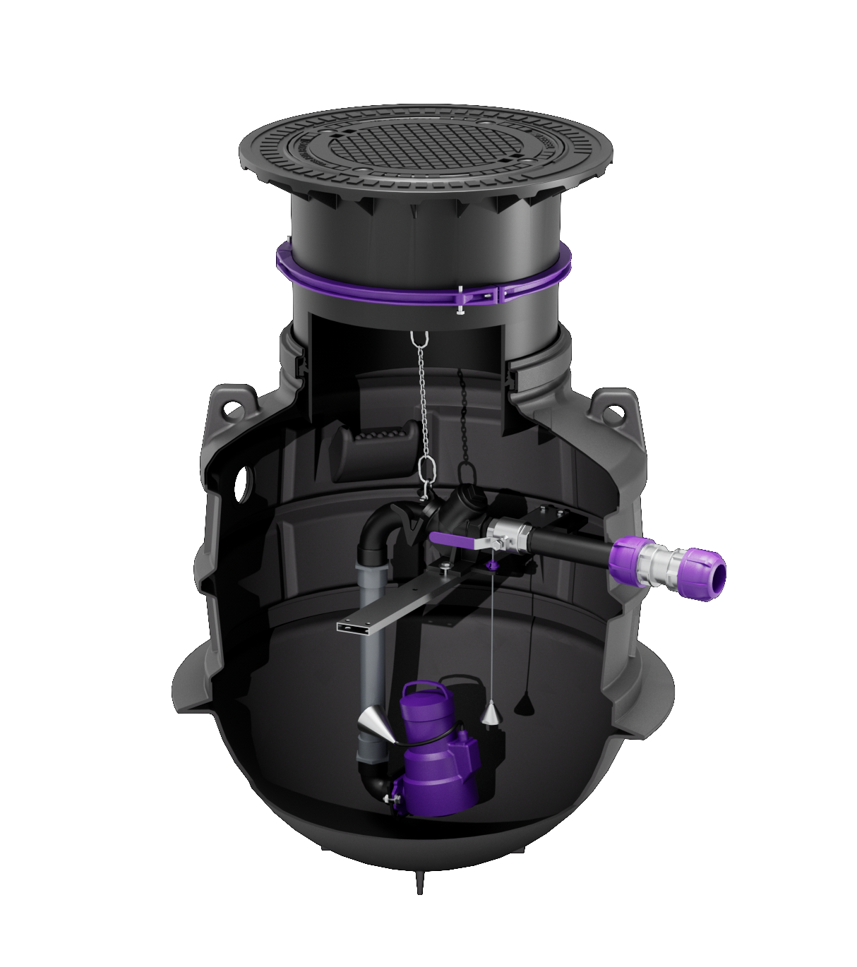 Die Pumpstation für fäkalienhaltiges und fäkalienfreies Abwasser ist zum Einbau ins Erdreich geeignet und ist mit einem Rückflussverhinderer für die Druckleitung ausgestattet. Der Behälter aus PE ist beständig gegen häusliches Abwasser und enthält eine begehbare Abdeckplatte aus Kunststoff. Die Pumpe mit Freistromrad sorgt für höchste Betriebssicherheit. Schnellverschlüsse ermöglichen die einfache Entnahme der integrierten Komponenten. Die Komponenten sind vormontiert zur bauseitigen Endmontage. Inklusive Freiflächen für Zulauf, Entlüftung und Kabelleerrohr.