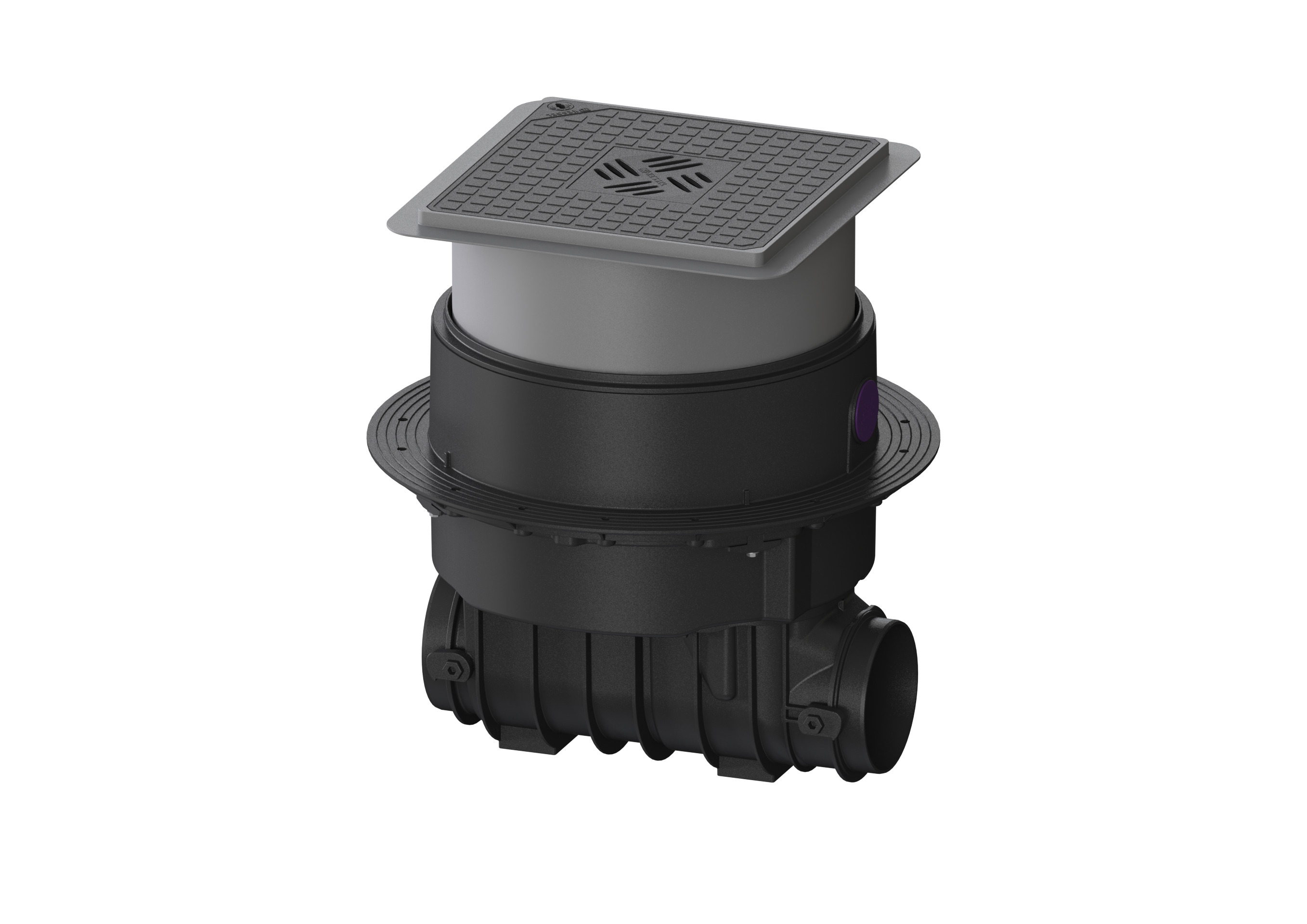 KESSEL-Rohbaukit für Pumpfix F, ohne Stutzen, schwarze Abdeckung. Rohbaukit bestehend aus Grundkörper, Aufsatzstück und Flansch zur Abdichtung im Verbund.