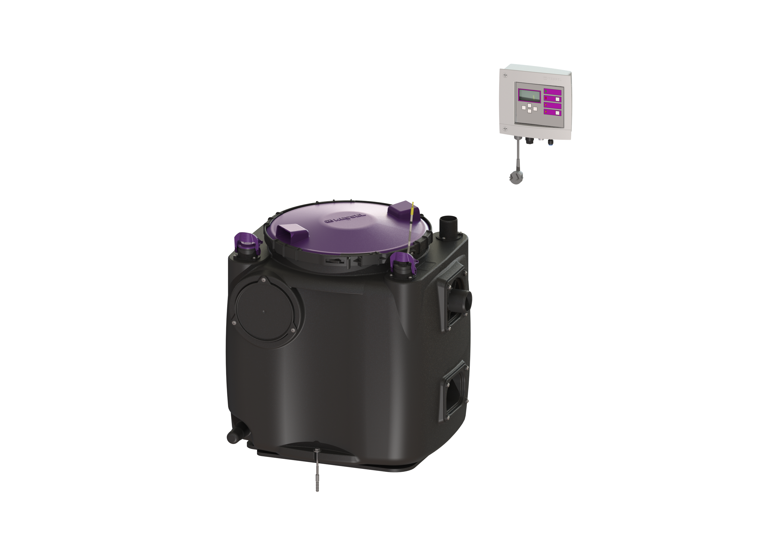 Die Hebeanlage für fäkalienfreies Abwasser ist mit einer oder zwei überflutbaren Pumpen sowie integriertem Rückflussverhinderer ausgestattet. Der Sammelbehälter aus dauerhaft beständigem Kunststoff (PE) besitzt einen offenen Pumpenraum. Einhandverschlüsse ermöglichen die einfache Entnahme der integrierten Komponenten.