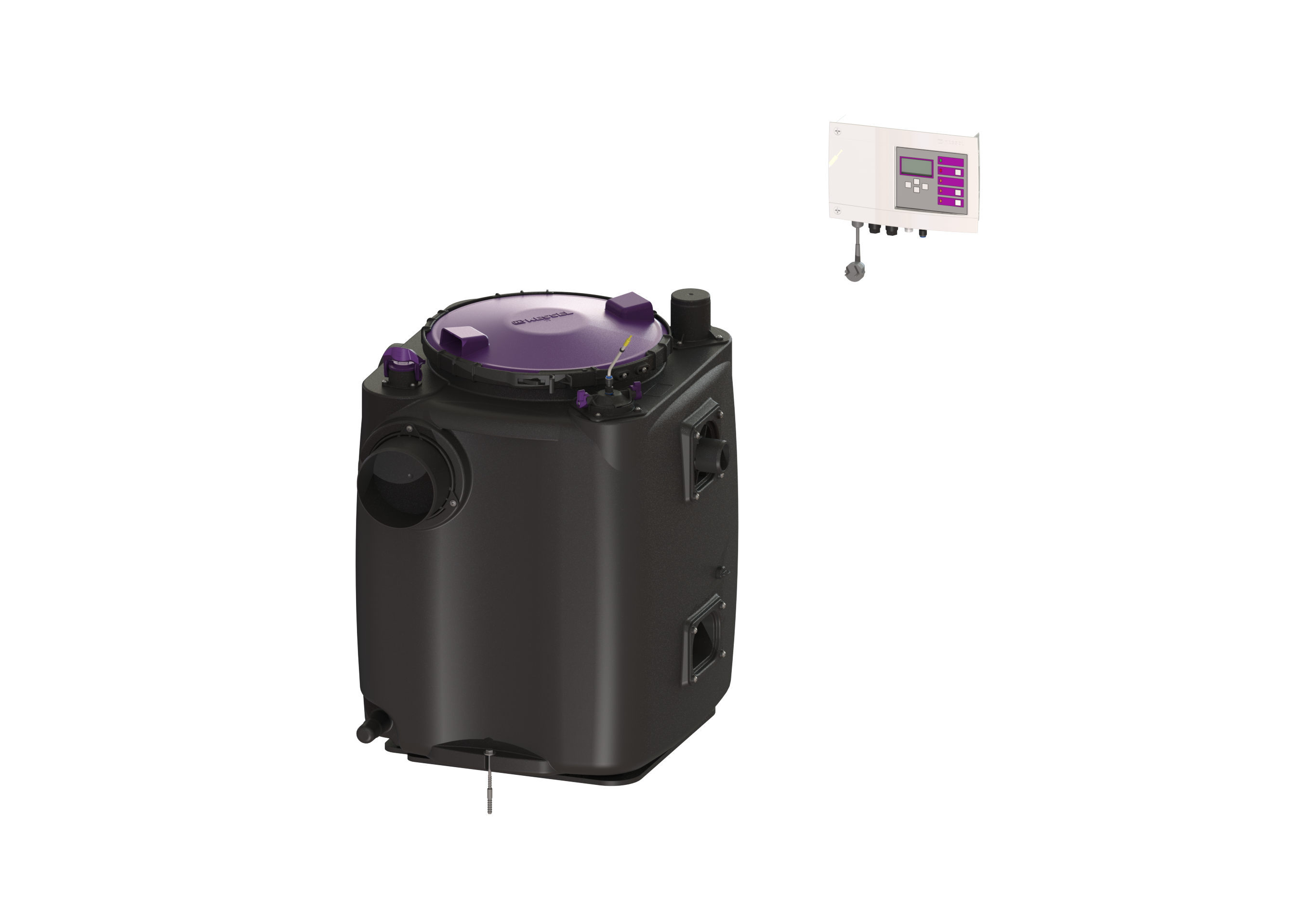 Die Hebeanlage für fäkalienfreies Abwasser ist mit einer oder zwei überflutbaren Pumpen sowie integriertem Rückflussverhinderer ausgestattet. Der Sammelbehälter aus dauerhaft beständigem Kunststoff (PE) besitzt einen offenen Pumpenraum. Einhandverschlüsse ermöglichen die einfache Entnahme der integrierten Komponenten.