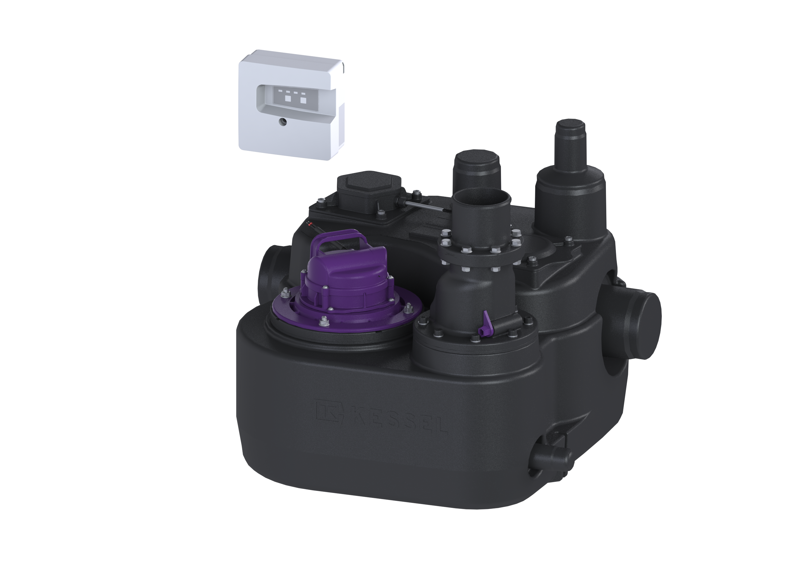 Die Hebeanlage für fäkalienhaltiges und fäkalienfreies Abwasser ist mit einer oder zwei überflutbaren Pumpen sowie einem Rückflussverhinderer ausgestattet.