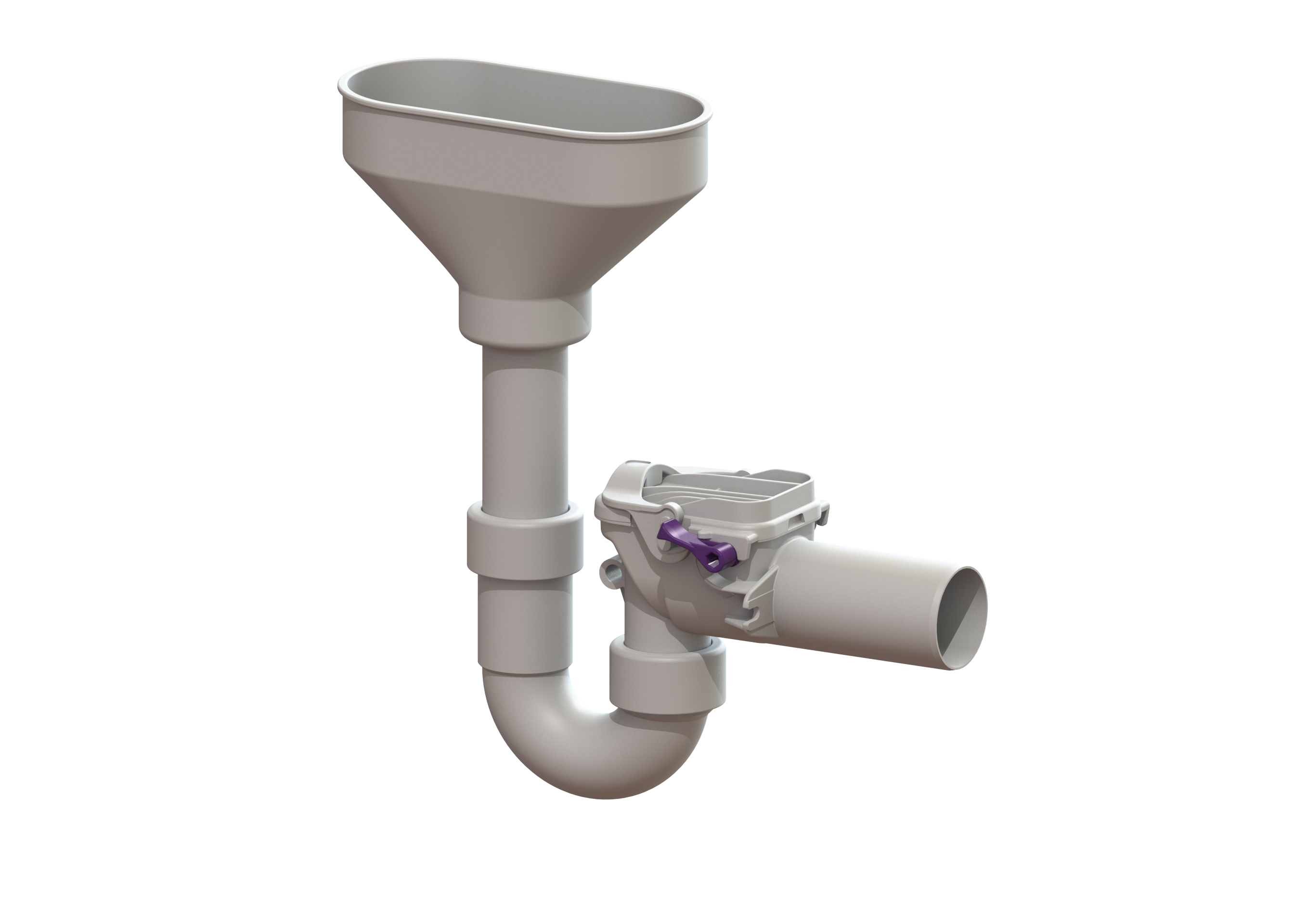 Der Rückstauverschluss für fäkalienfreies Abwasser ist mit zwei mechanischen Klappen ausgestattet, die bei Rückstau selbsttätig schließen. Eine Klappe dient gleichzeitig als handverriegelbarer Notverschluss.