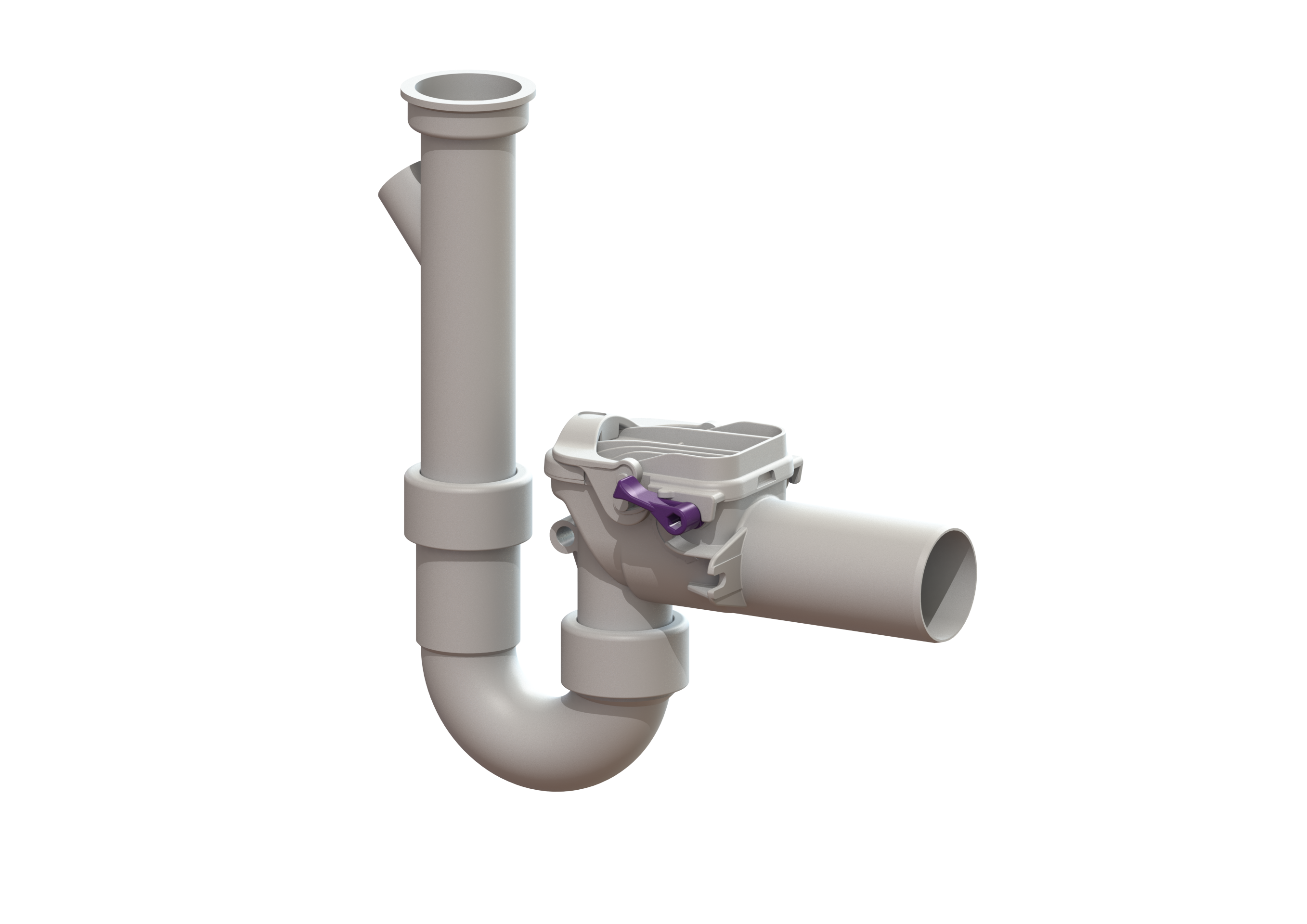 Der Rückstauverschluss für fäkalienfreies Abwasser ist mit zwei mechanischen Klappen ausgestattet, die bei Rückstau selbsttätig schließen. Eine Klappe dient gleichzeitig als handverriegelbarer Notverschluss.