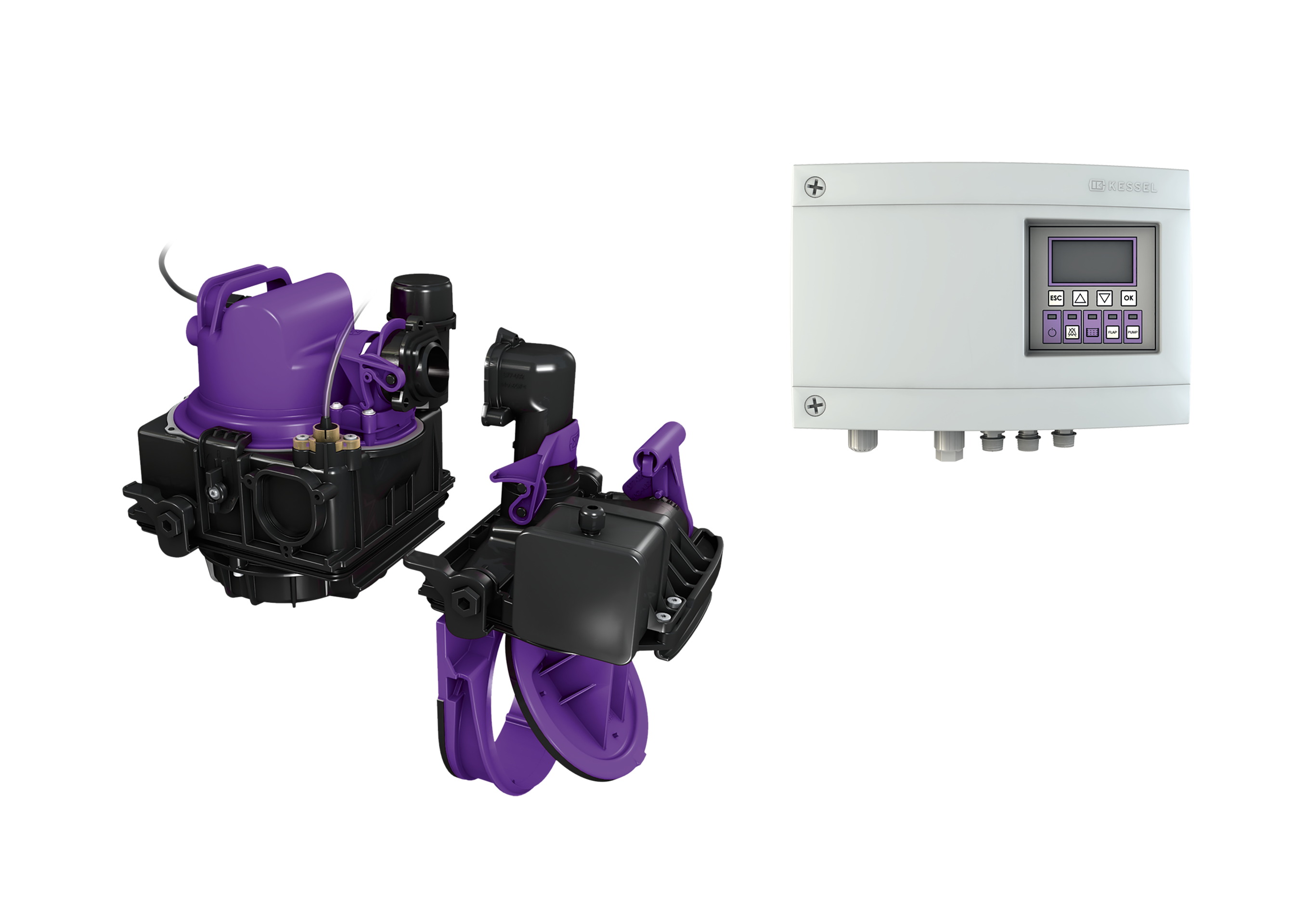 Der Umrüstsatz ist mit einer Pumpe und einem motorischen Verschlusssystem ausgestattet. Im Normalzustand ist der Rohrquerschnitt frei geöffnet. Bei Rückstau wird das motorische Verschlusssystem automatisch geschlossen. Die Entwässerung während der Rückstauphase erfolgt über die Pumpe mit integrierter Schneideinrichtung.